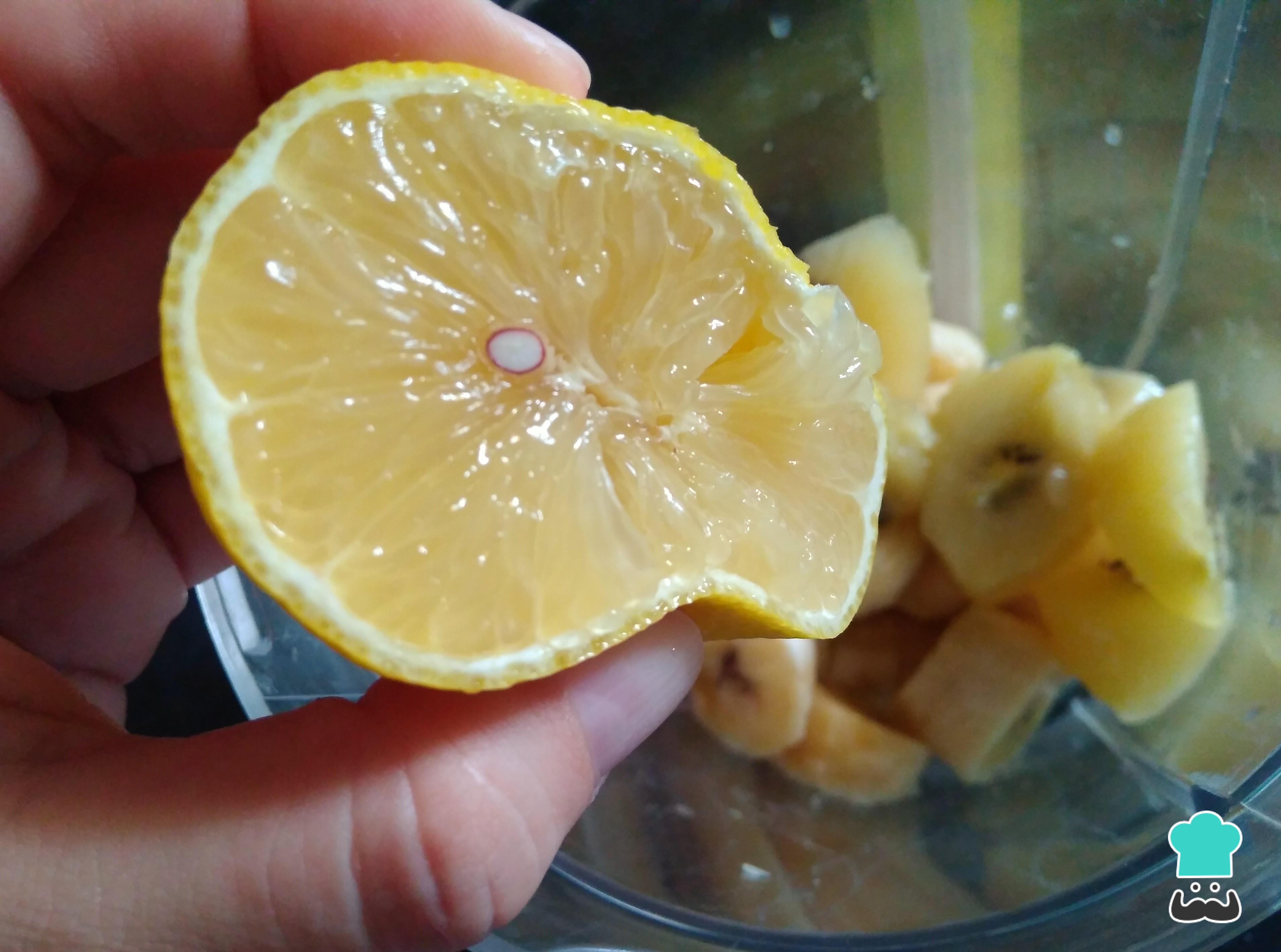 Siempre añado un poco de jugo de limón a todos los batidos de fruta que preparo, el ácido del limón ayuda a resaltar los sabores de las frutas. Si quieres también puedes añadir semillas de chía o bayas goyi al batido.