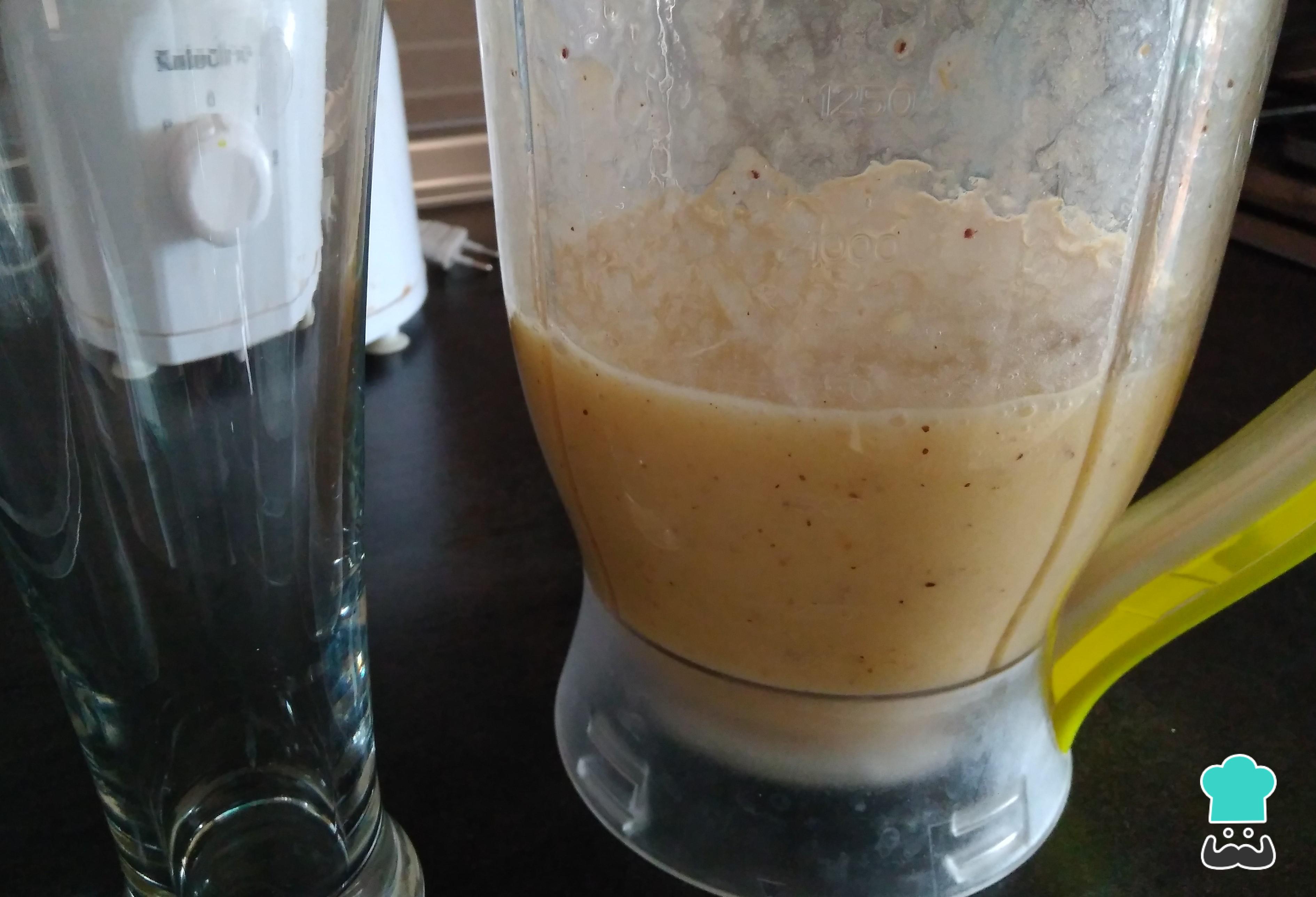 Trituramos todo unos minutos hasta quede completamente líquido, sin ningún tipo de grumos. La cantidad de agua es al gusto, yo prefiero los batidos más espesos pero si te gustan más líquidos puedes añadir un poco más de agua al gusto.