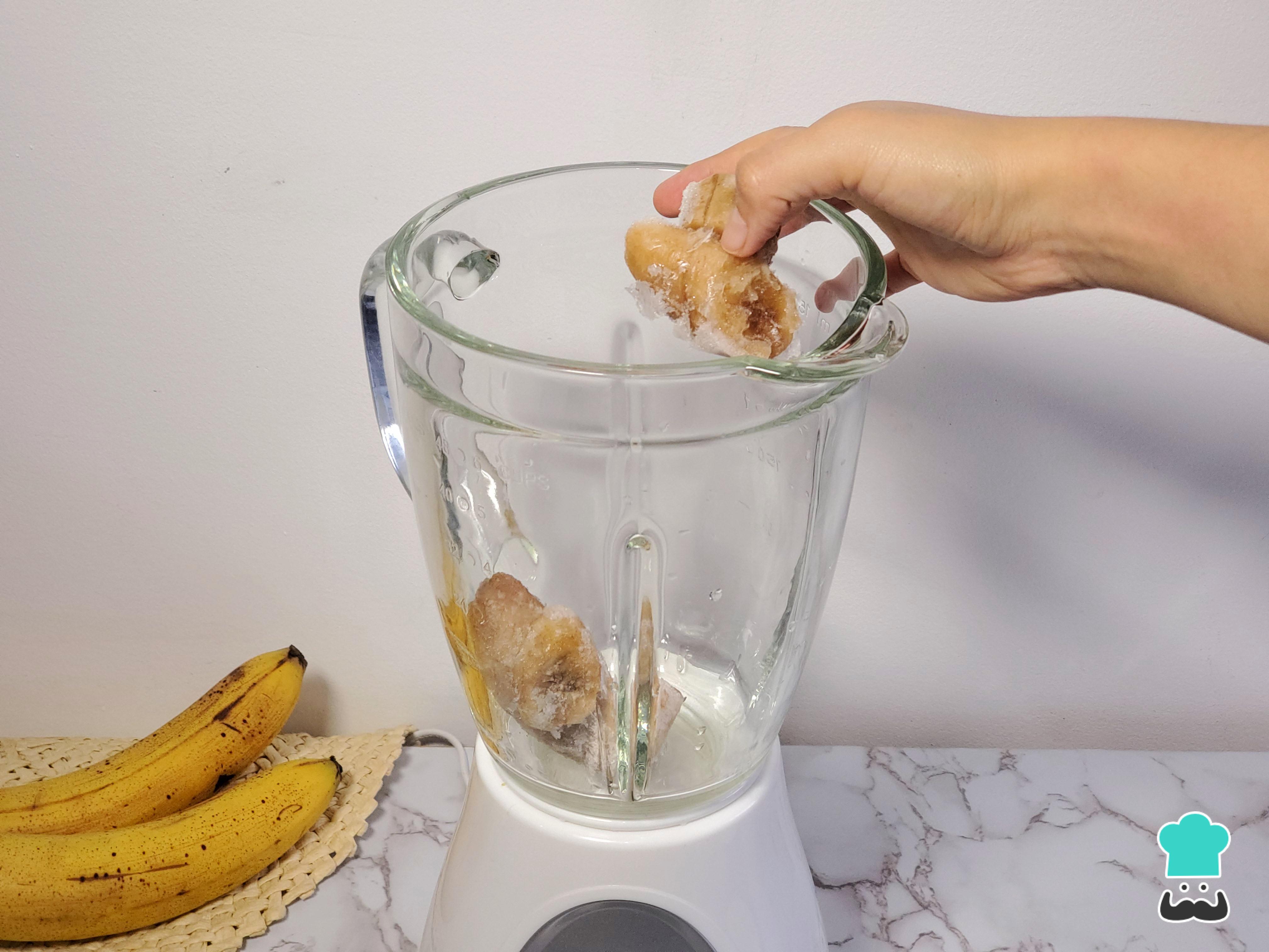 Para preparar este batido, pela los plátanos y córtalos en rodajas, luego congélalos. Esto le dará una textura aún más cremosa y refrescante a la bebida. Cuando estén bien congelados, agrégalos al vaso de la licuadora.