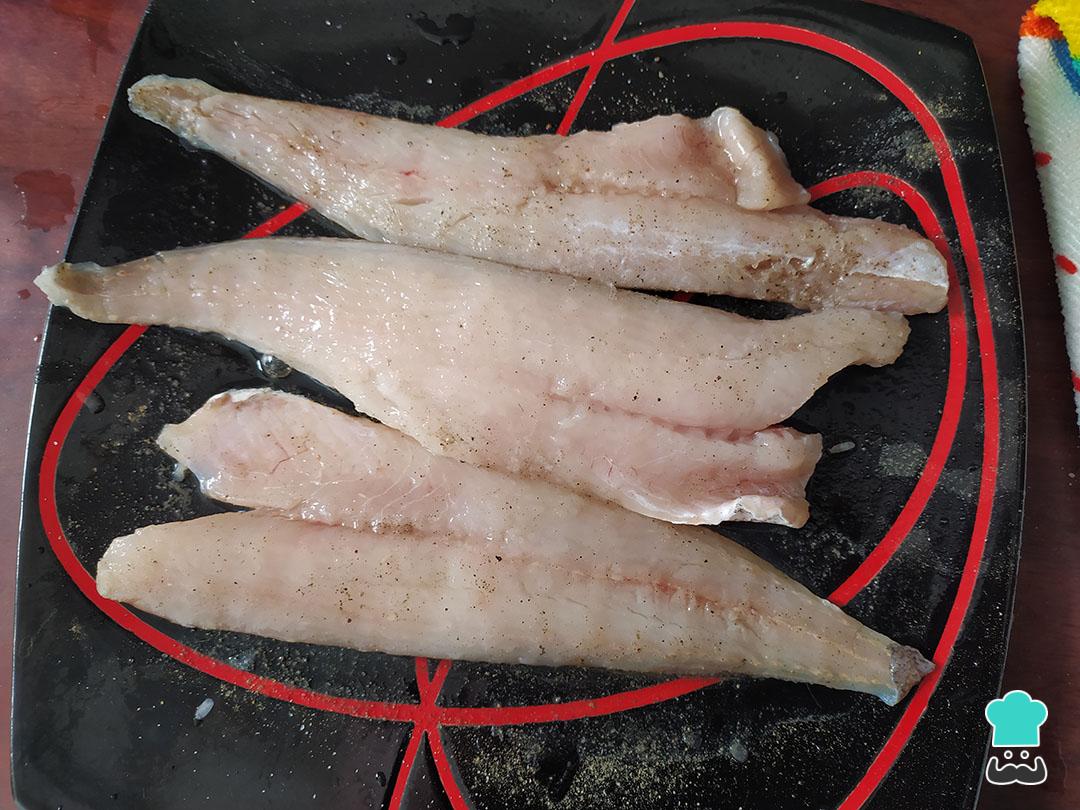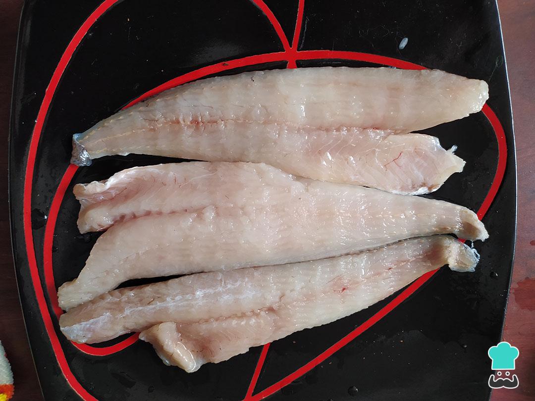Lava y prepara los filetes de pescado. Si tiene piel trata de quitarla, también se puede comer pero queda mejor sin la piel.