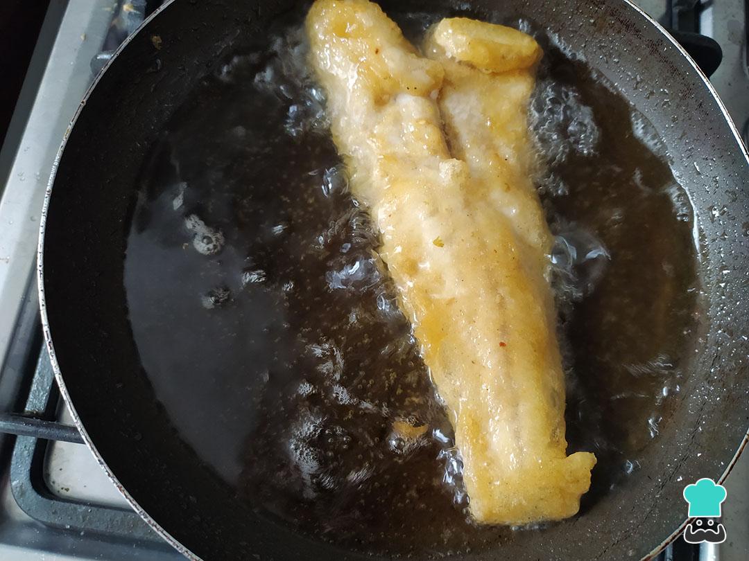 En la sartén con aceite hirviendo, fríe cada filete de 3 a 5 minutos por lado. Si te gusta bien dorado, repite esto 2 veces por cada lado.