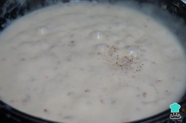 Truco: también puedes hacer la bechamel con cebolla y bacon añadiendo pedazos de este ingrediente cuando la cebolla esté casi lista.