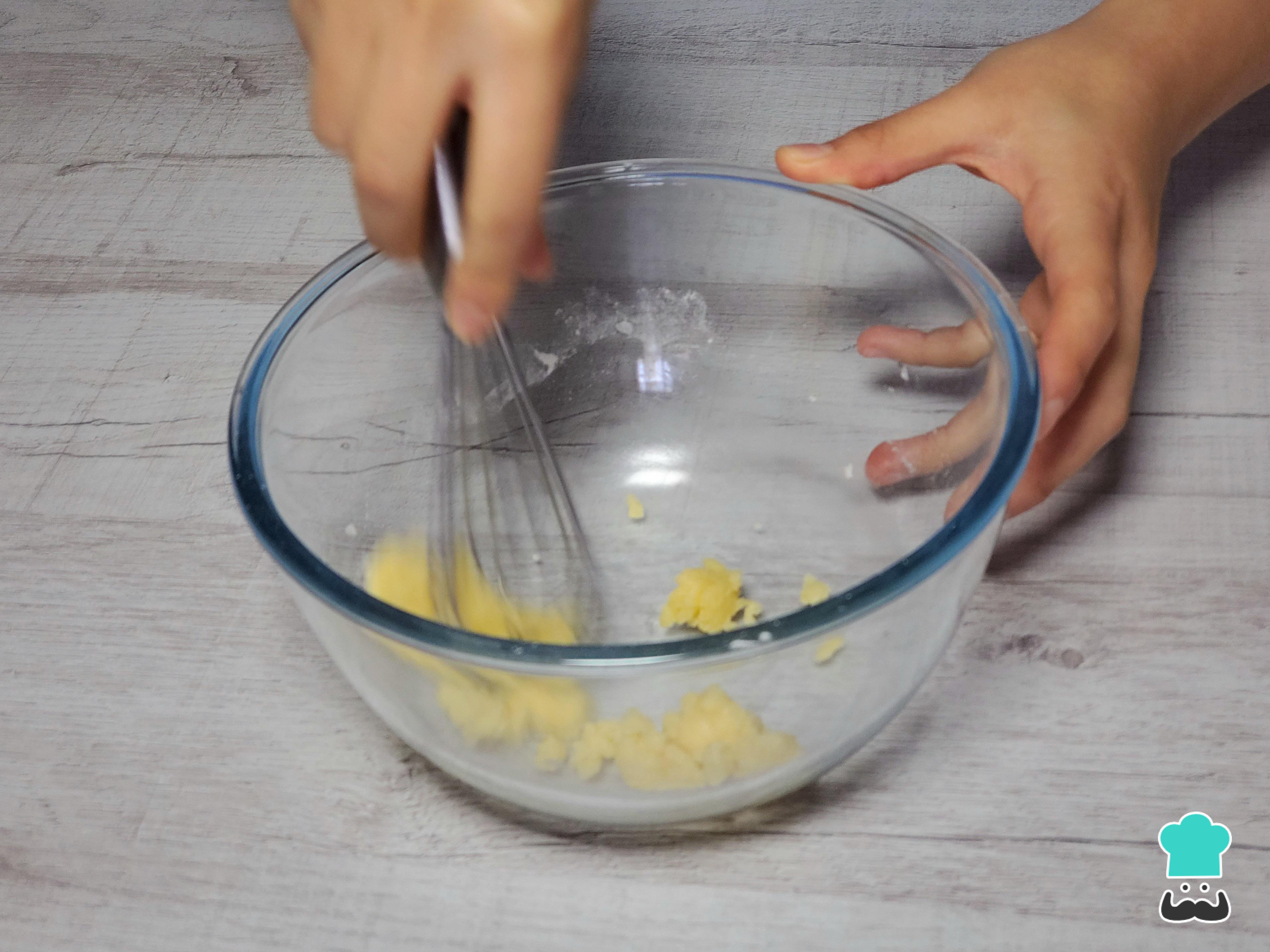 Retíralo y mezcla bien con un batidor de globo hasta que se forme una pasta uniforme, sin grumos de harina.