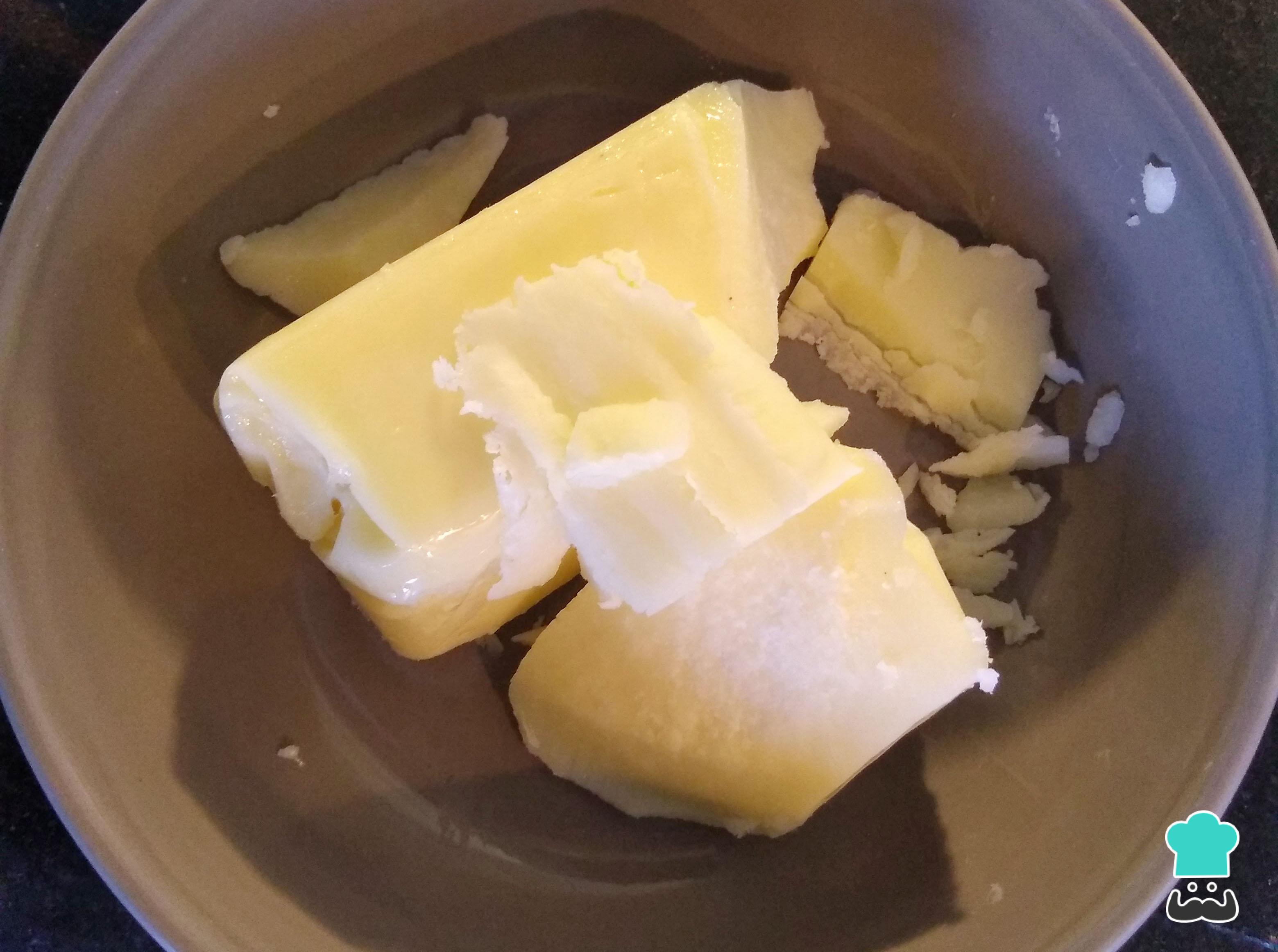 Coloca la grasa en un bol a temperatura ambiente y déjala descansar por unos 20 minutos para que esté blanda al momento de amasar.