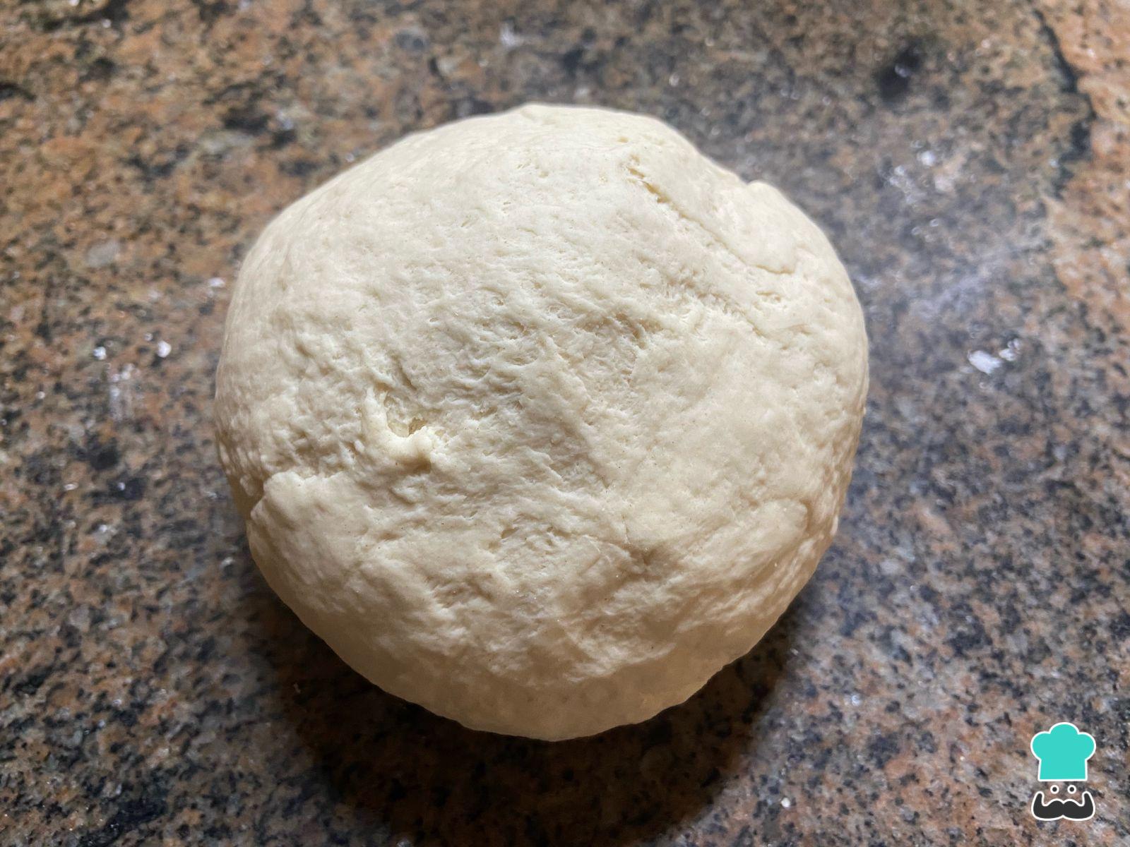 Lleva a la mesada y amasa durante 8 minutos hasta que obtengas un bollo liso. Coloca en un recipiente, cubre con papel film o repasador y deja descansar por 30 minutos para que leve.