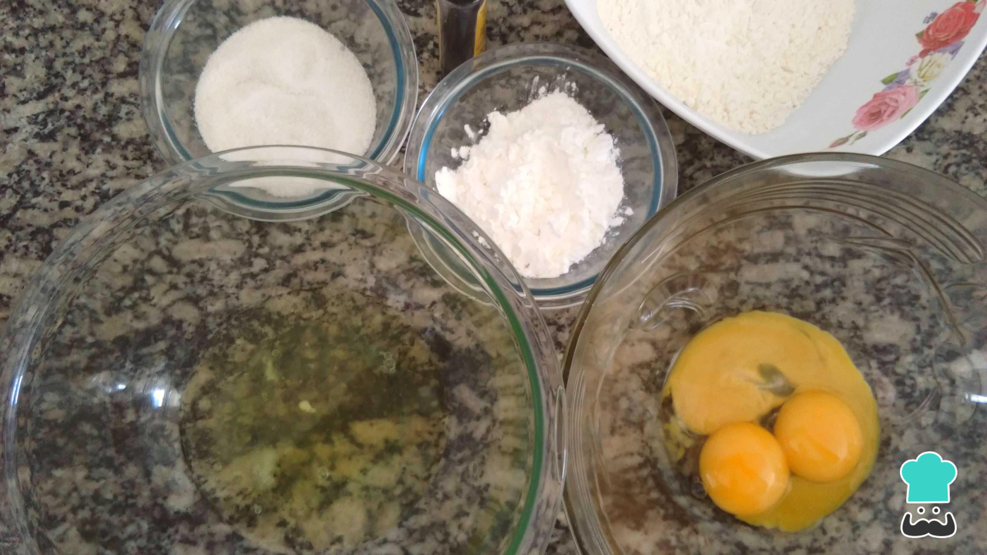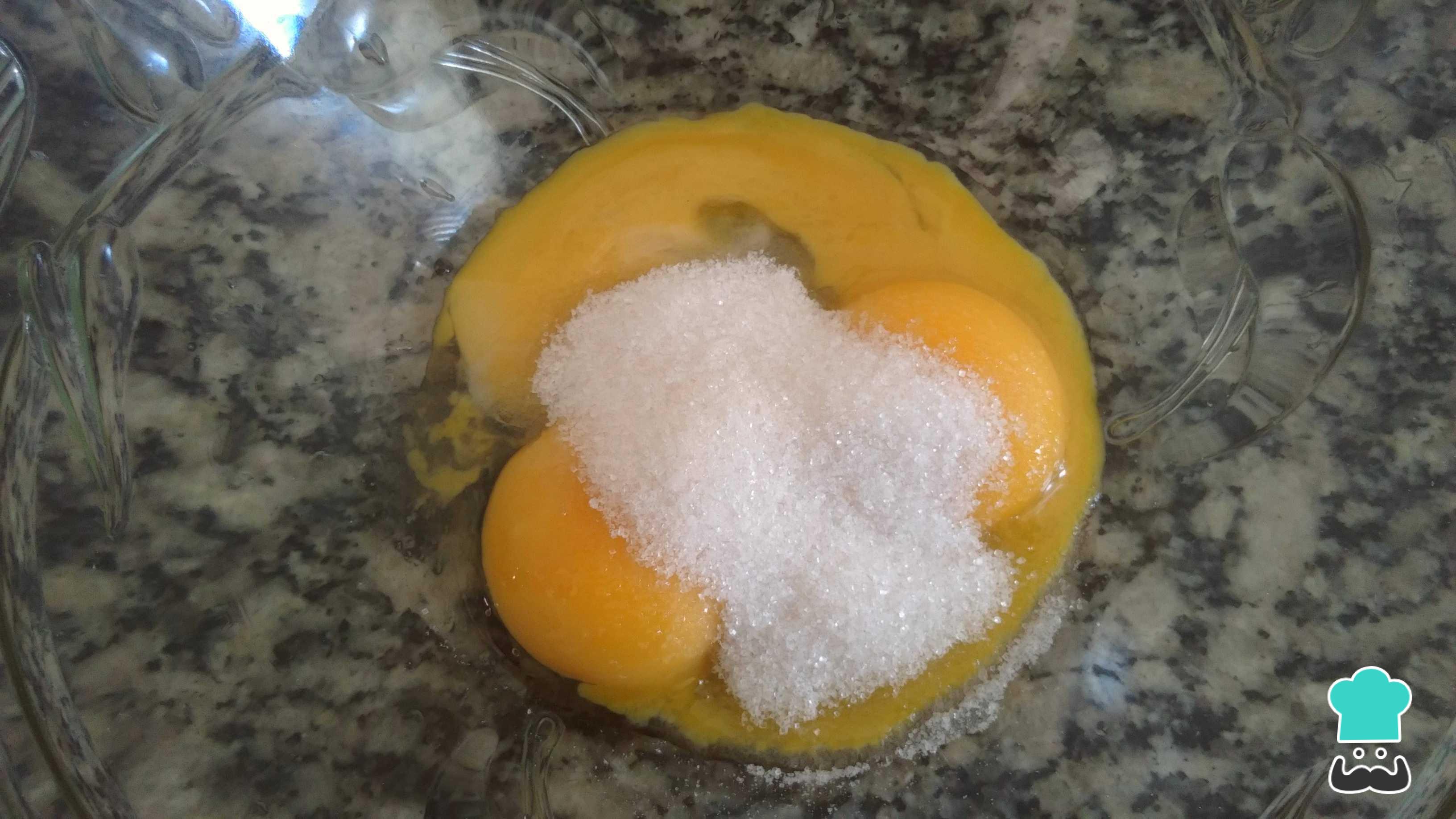 Enciende el horno a unos 180-190 °C. Añade una parte del azúcar a las yemas y bate a velocidad máxima.