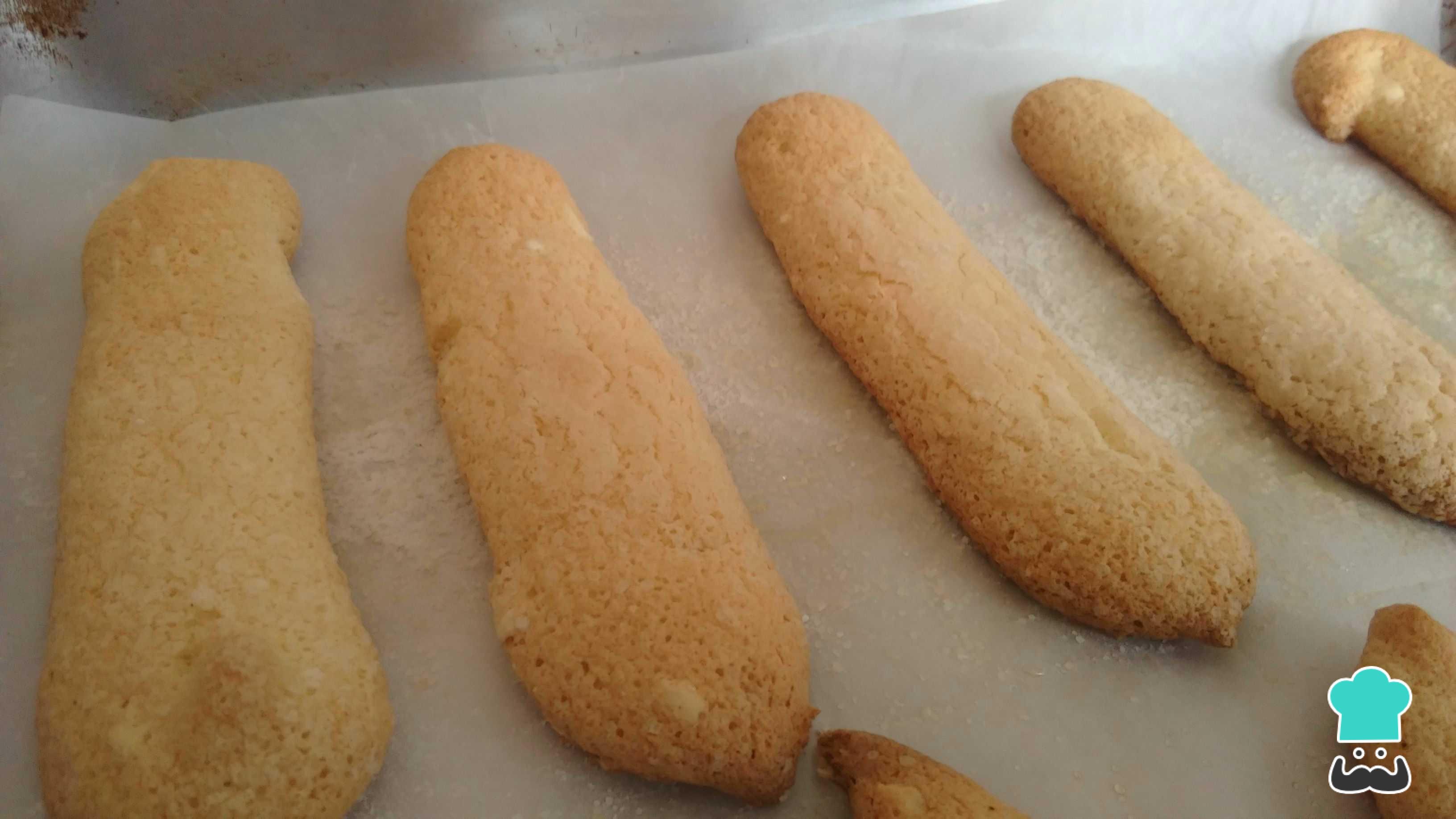 Hornea los bizcochos de soletilla hasta que doren completamente, lo que puede tomar entre 10 y 15 minutos. Deja que se enfríen un momento para que se endurezcan y retíralos con suma delicadeza del papel para evitar que se rompan.