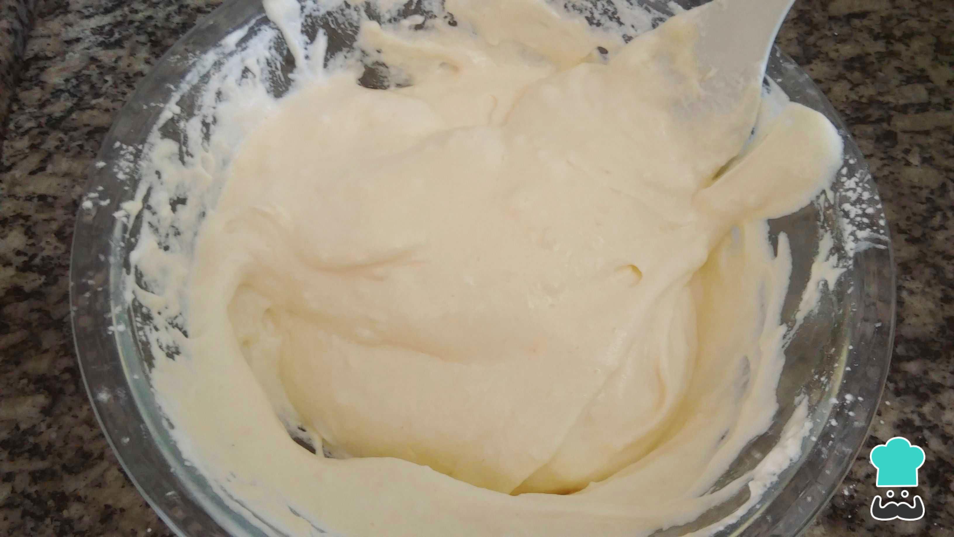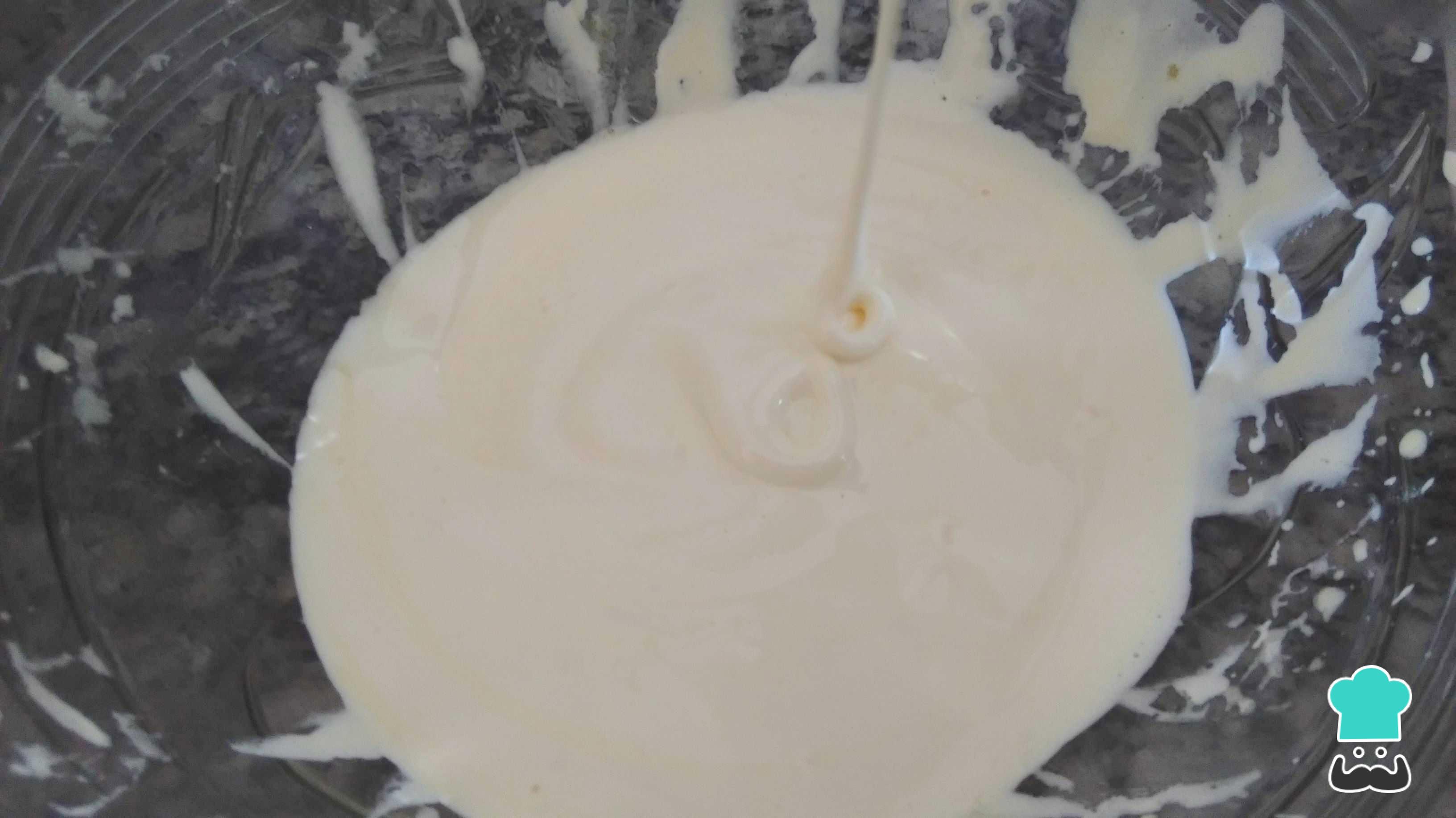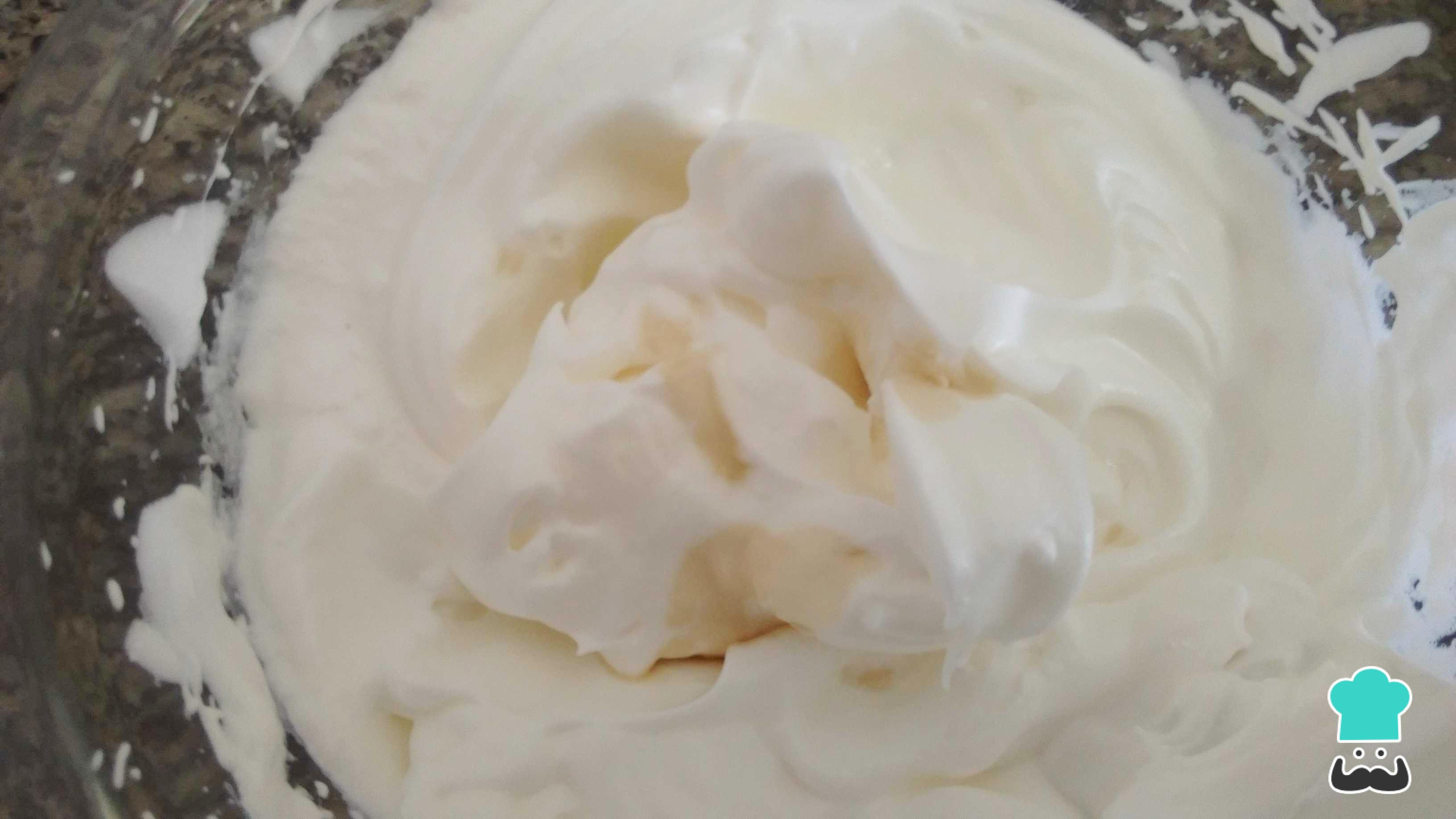 La consistencia deseada es una mezcla espesa, llena de aire y con cuerpo. Esto te puede tomar unos 5 minutos, pero depende de tu batidora.
