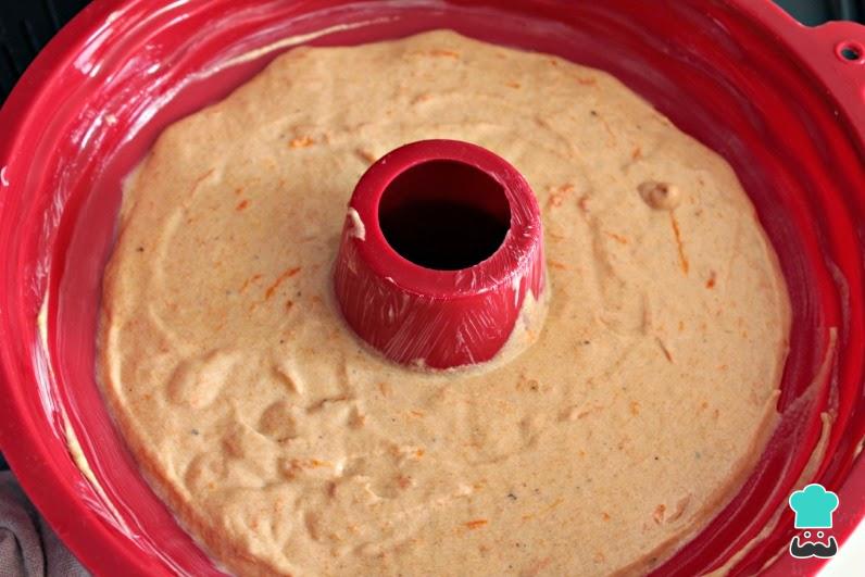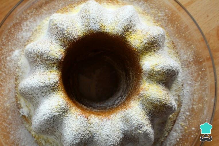 Engrasamos el molde para bundt cake y vertemos la masa del bizcocho dentro. La repartimos bien para evitar que queden bolsas de aire y horneamos la torta durante 50-55 minutos, hasta que al pincharla con un palillo salga completamente limpio.