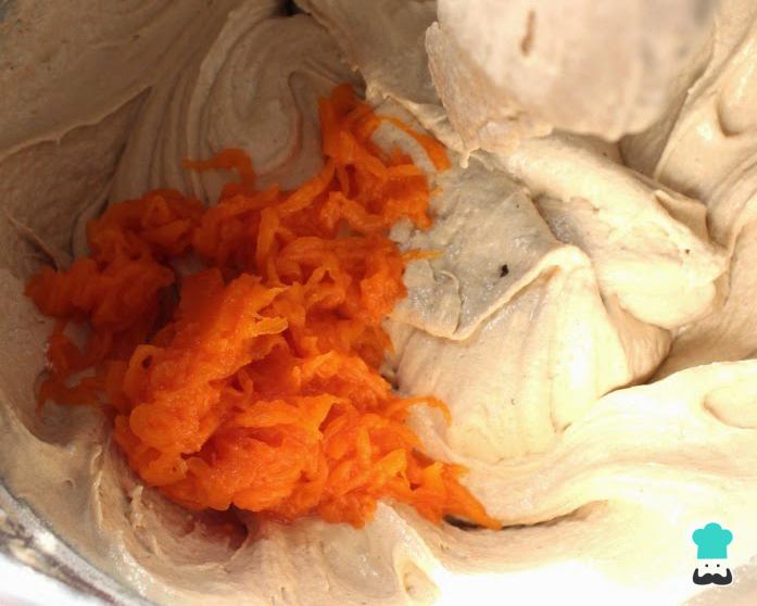Por último, añadimos el puré de calabaza y lo integramos con la ayuda de una espátula, haciendo movimientos envolventes.