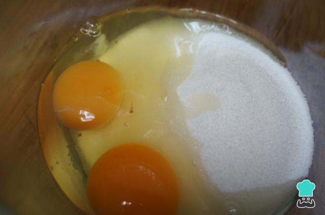 Para empezar con la receta de bizcocho de calabaza y chocolate, primero precalienta el horno a 180 ºC con calor arriba y abajo. Por otro lado, cuece la calabaza cortada en trozos en el microondas a máxima potencia durante 10 minutos o hasta que quede bien cocida. Tritúrala con un tenedor cuando esté. Aparte, coge un bol y añade en él el azúcar y los huevos para batirlos hasta que queden bien cremosos.