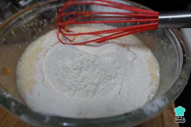Tamiza la harina con los sobres de gasificante (o de levadura en polvo) y añádela poco a poco a la masa, integrándola con una espátula o una varilla manual haciendo movimientos envolventes. Para que el bizcocho de calabaza y chocolate quede bien esponjoso, es necesario añadir todo el aire posible a la masa.