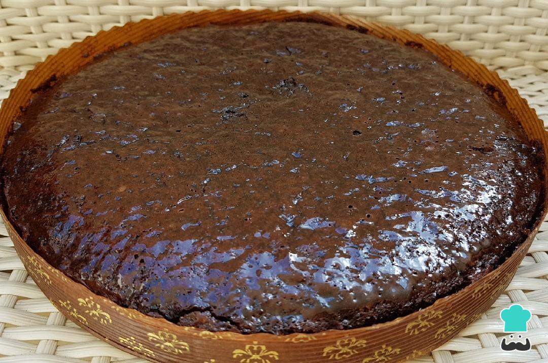 Precalienta el horno a 180 grados y cocina el pastel de chocolate vegano fácil y rápido durante media hora.