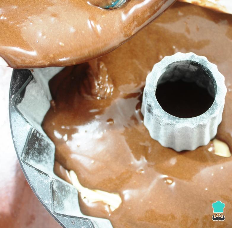 Ahora deberás verter la mitad de la masa de chocolate en el molde preparado.