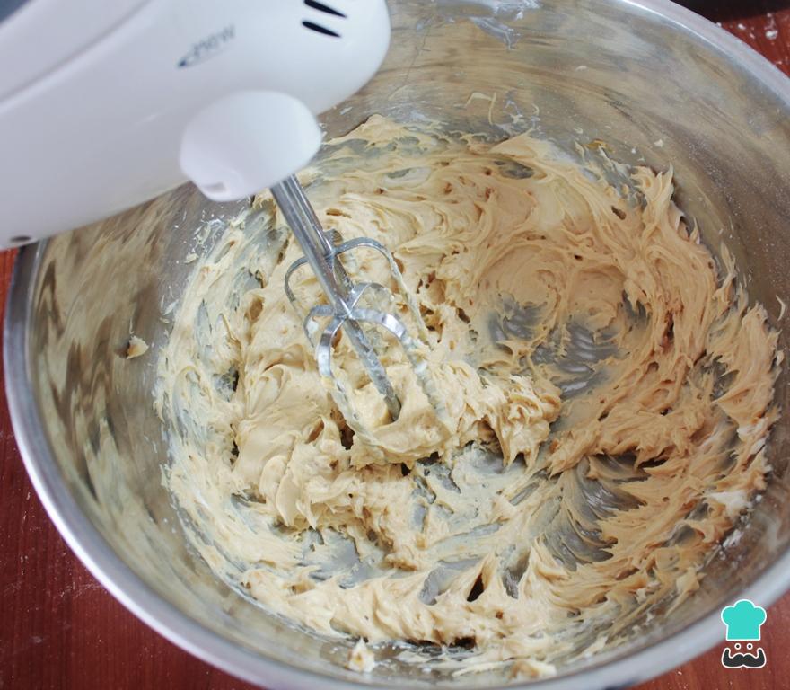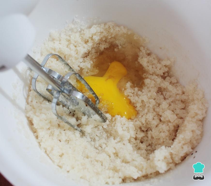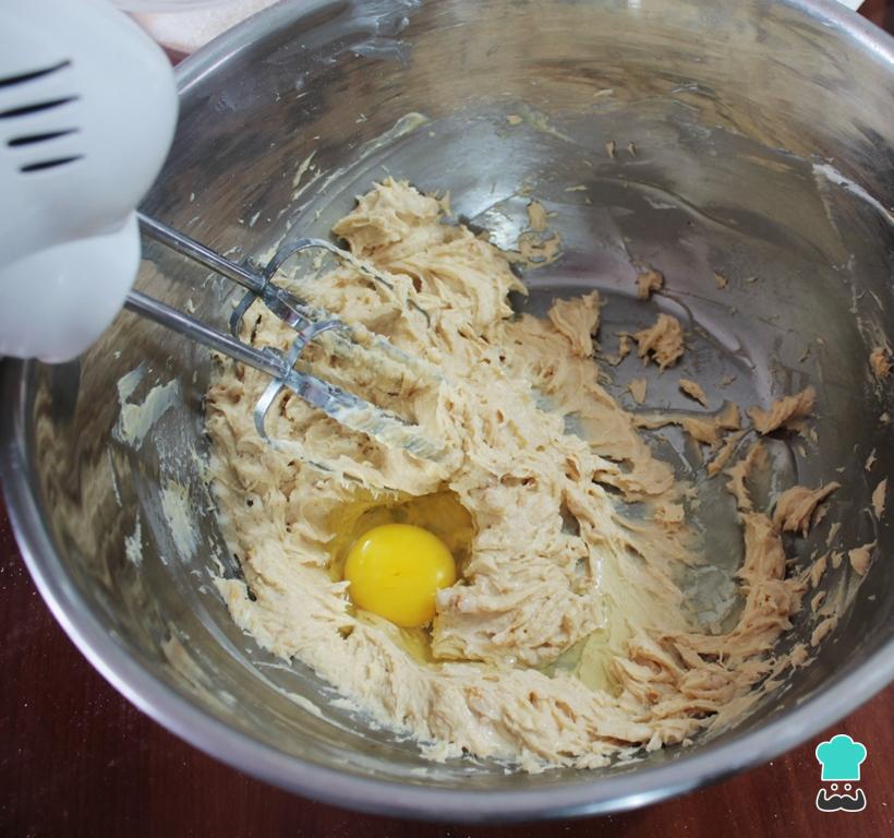 Cuando estos ingredientes estén bien integrados, debemos añadir el huevo y volver a batir bien. Cuando la crema esté lista, metemos la mezcla en una manga de repostería o una bolsa a la que le cortaremos un piquito. Reservamos.