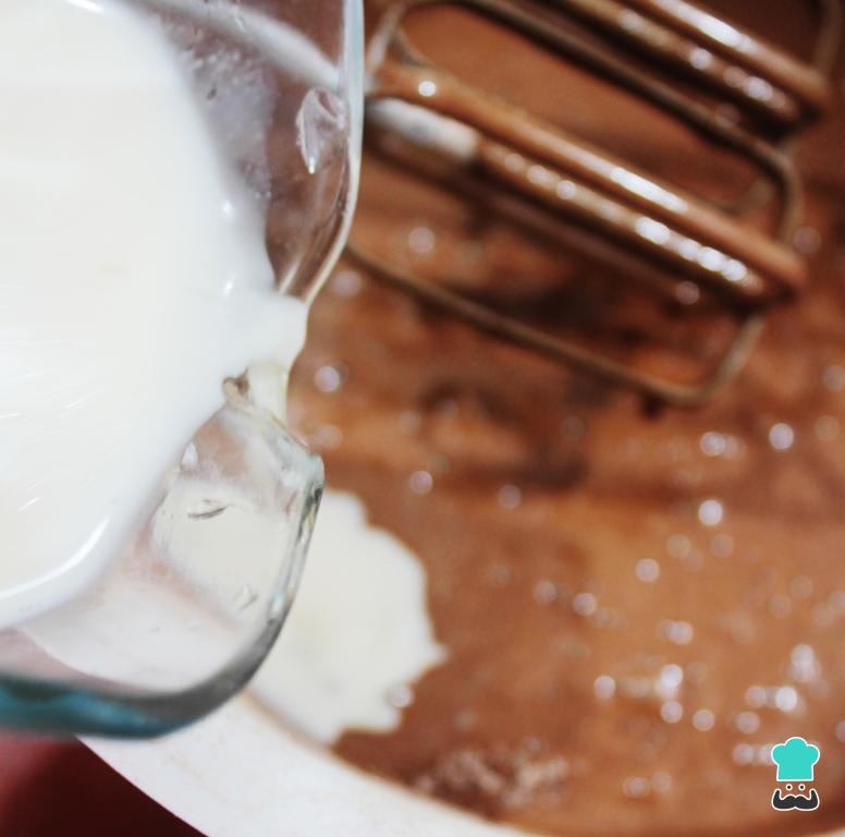 Cuando observes que la masa está homogénea, incorporar la mitad de la mezcla de la harina y empieza a batir lentamente. A continuación, agregar la mitad de la leche y seguir batiendo.