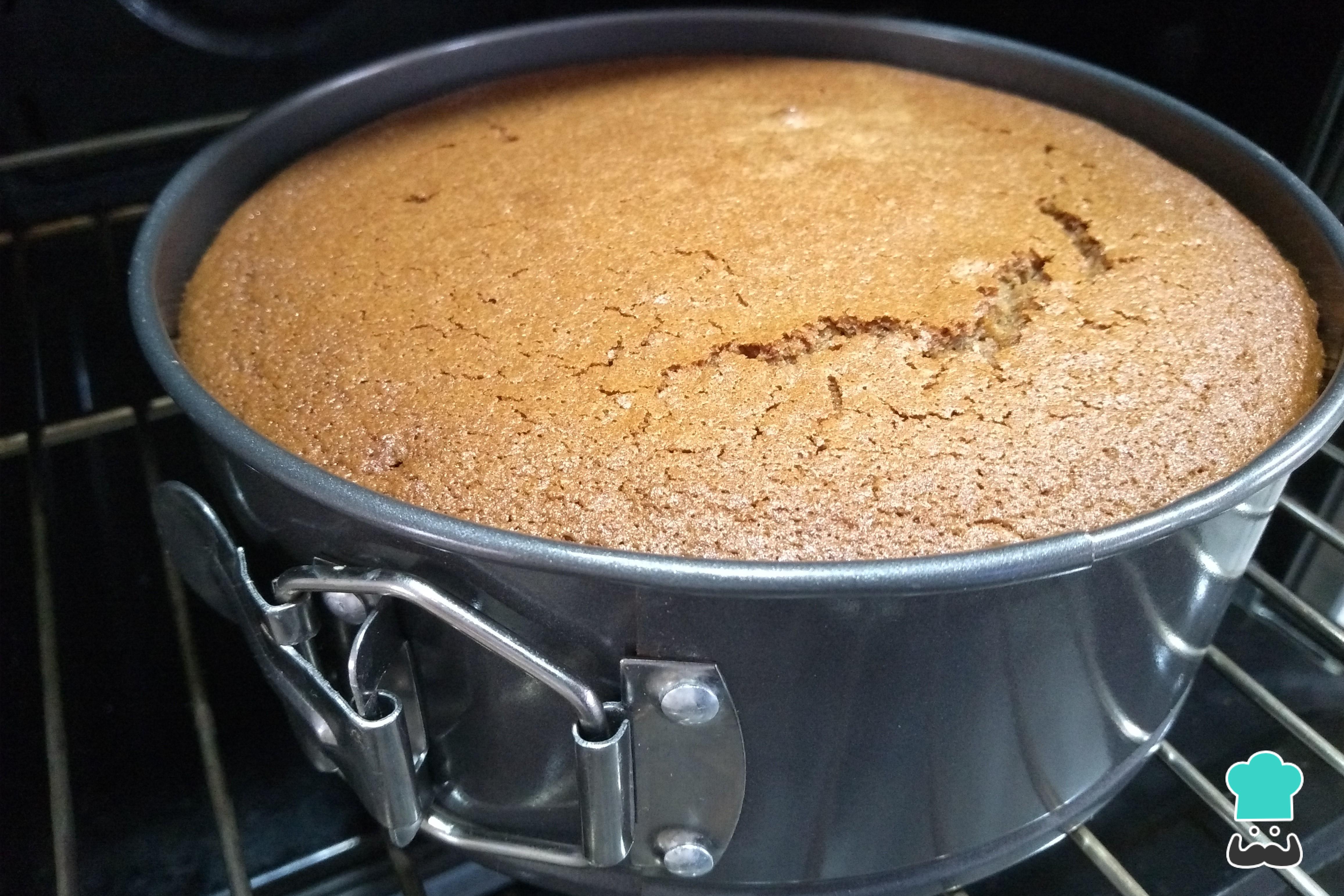 Incorpora todos los ingredientes haciendo movimientos envolventes para que quede una masa cremosa y esponjosa. Después, vierte la masa en el molde y hornea el bizcocho de galleta durante 25 minutos aproximadamente, siempre que la temperatura de tu horno sea acuerdo con las expectativas. Si necesitas más tiempo, deja que cueza hasta que veas que al pinchar el bizcocho en el centro con un palillo sale limpio.