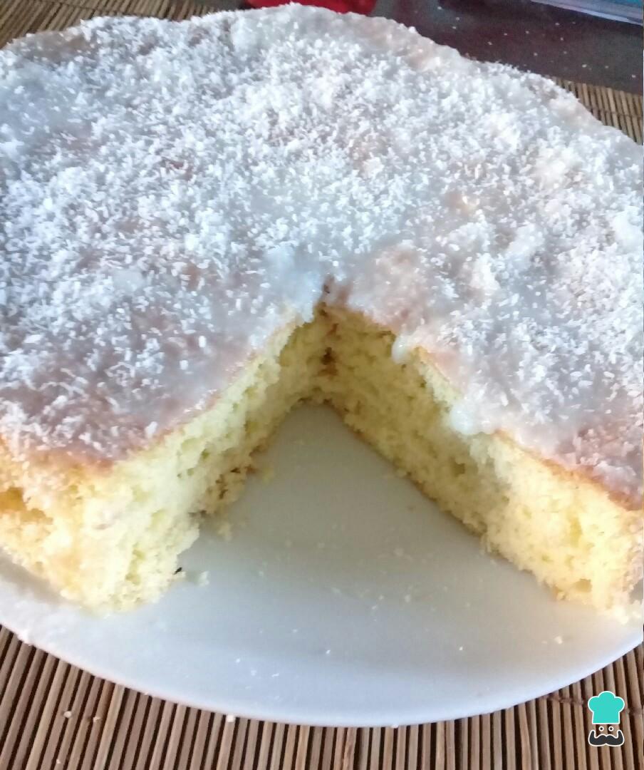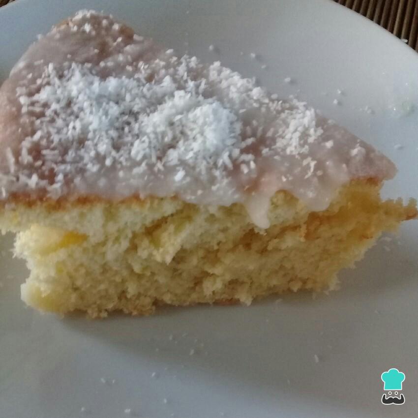 Para el glaseado se mezcla el jugo de 1/2 limón restante y el azúcar impalpable. Esta mezcla la ponemos encima de la torta y espolvoreamos con coco rallado. Así tendremos una rica torta para la merienda con sabor a limón y coco. Esta torta o bizcocho de limón y coco con glaseado no contiene mantequilla ni levadura tipo Royal .