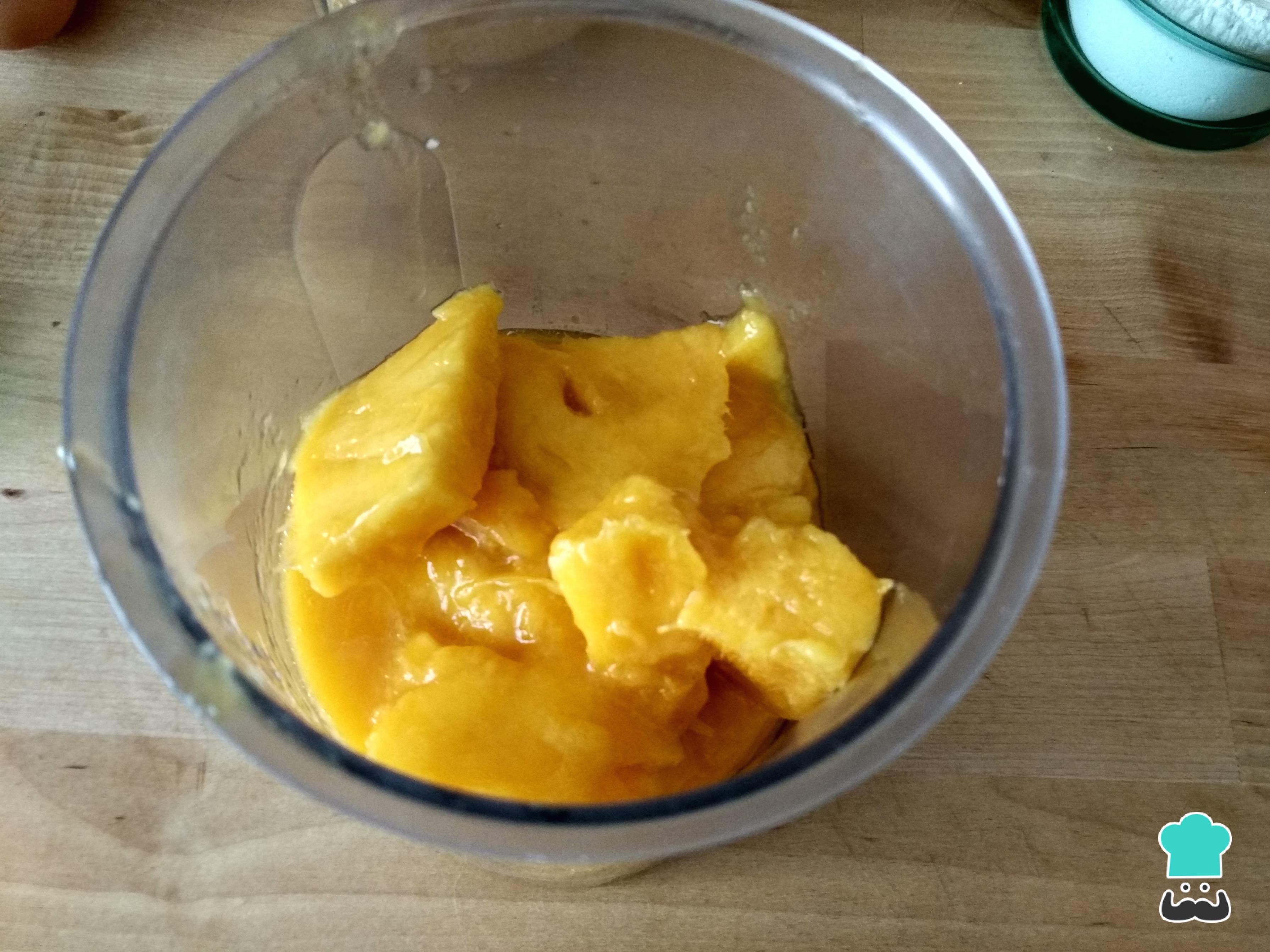 A continuación, batimos el mango y el plátano con la ayuda de la batidora hasta que queden hechos puré.