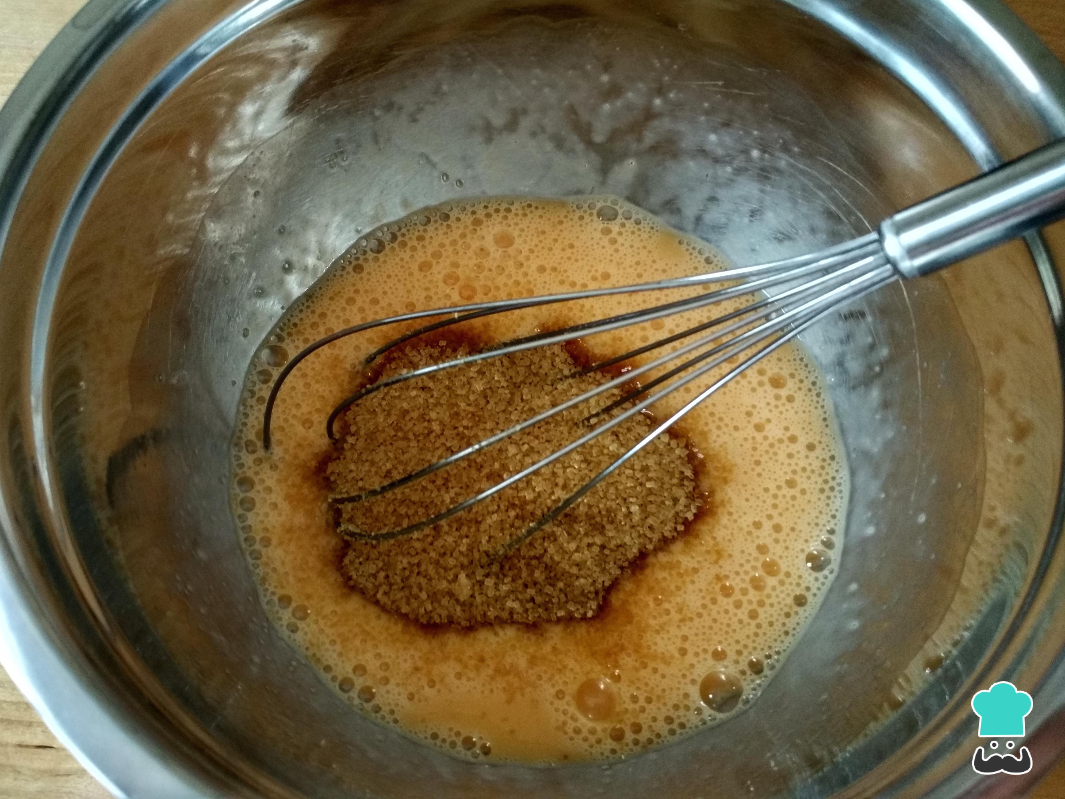 En un bol batimos los huevos con el azúcar moreno hasta que se integre bien el azúcar.