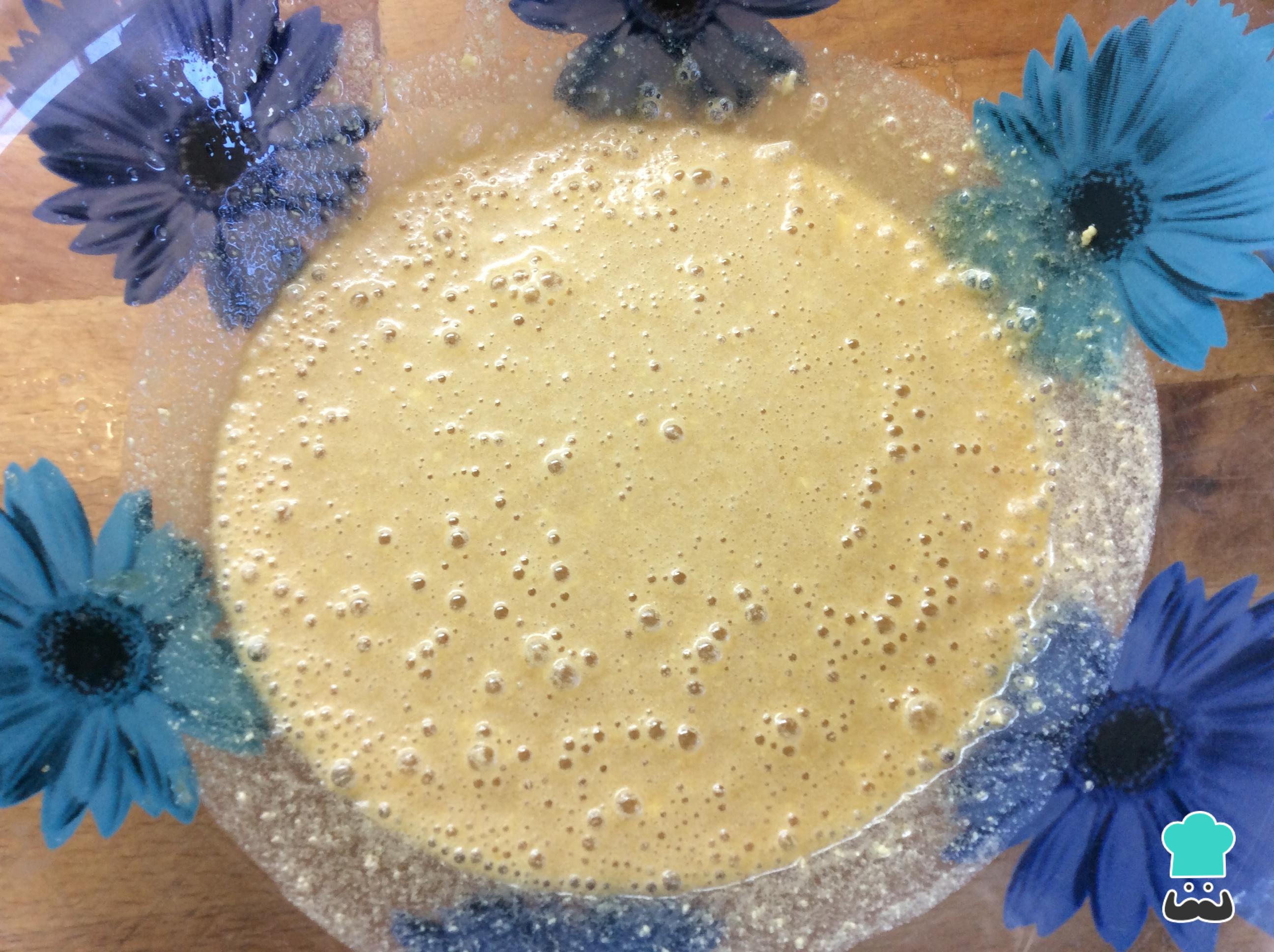 En un bol grande batimos los huevos con el azúcar. Lo podemos hacer a mano o con las varillas eléctricas, en función de los utensilios que tengamos en nuestra cocina.