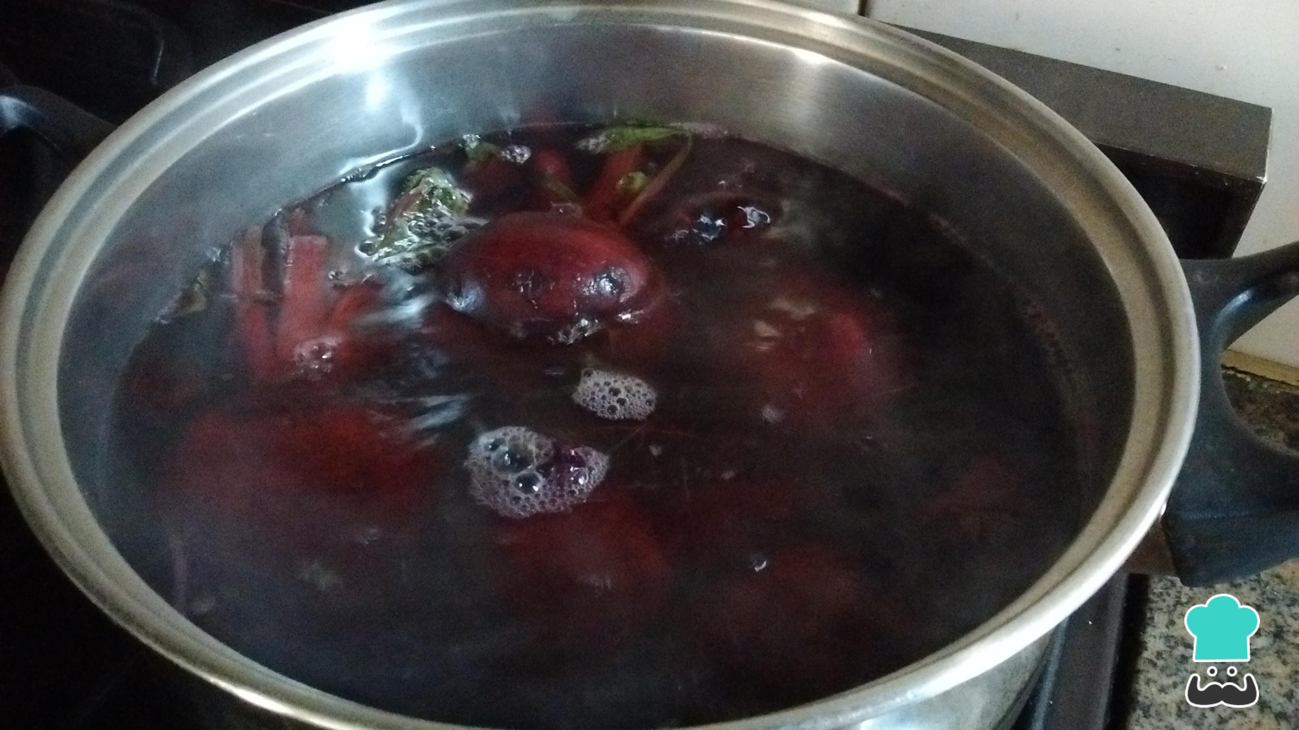 Para empezar con la preparación de este bizcocho, deberás cocinar la remolacha en abundante agua por unos 40 minutos o hasta que esté tierna. Es importante que mantengas una parte de su tallo y la piel para que no pierda en el agua su color característico y nutrientes.