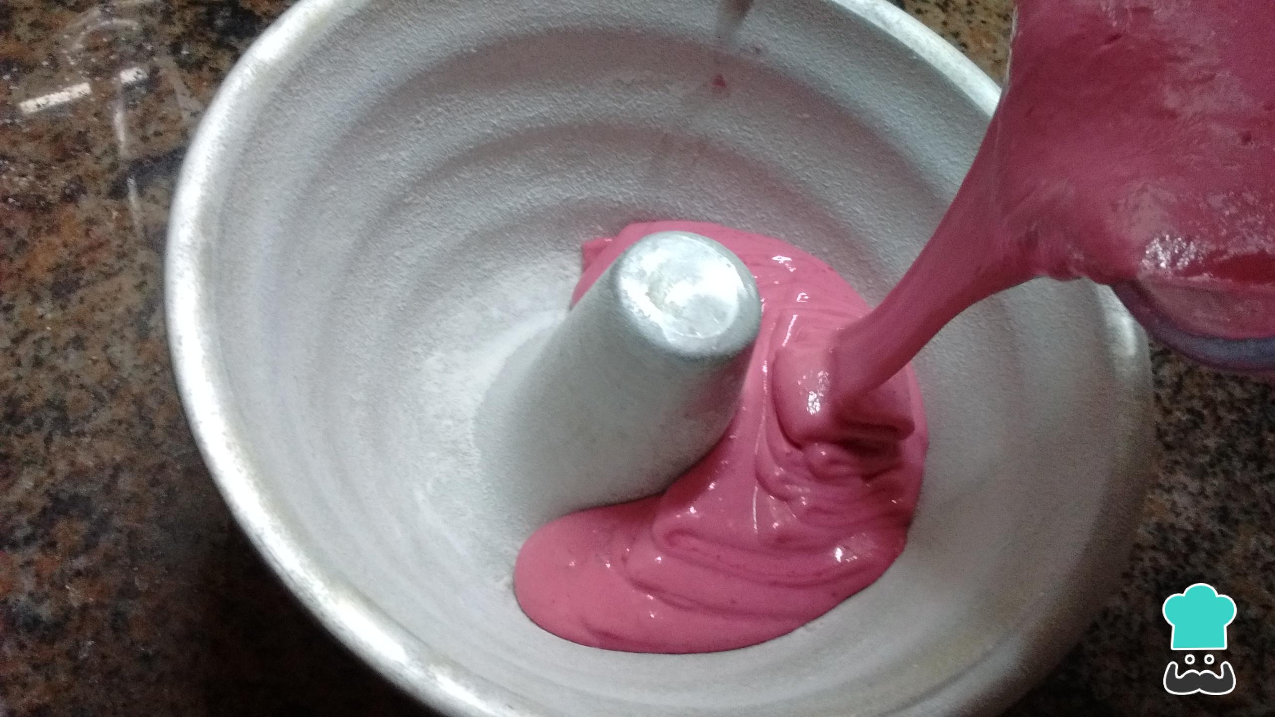Cuando hayas procesado toda tu preparación y esté bien integrada, vuélcala en el molde donde deseas cocinar tu pastel de remolacha. Este es un savarín de 16 centímetros de diámetro. Deberás engrasarlo y enharinarlo previamente para que se desmolde facilmente.