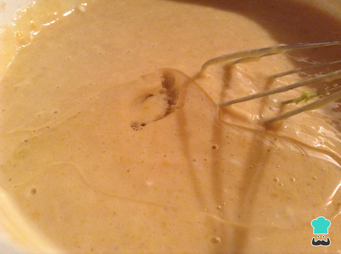 Añade los huevos uno a uno y mezcla con un batidor de mano hasta que se integren los por completo.