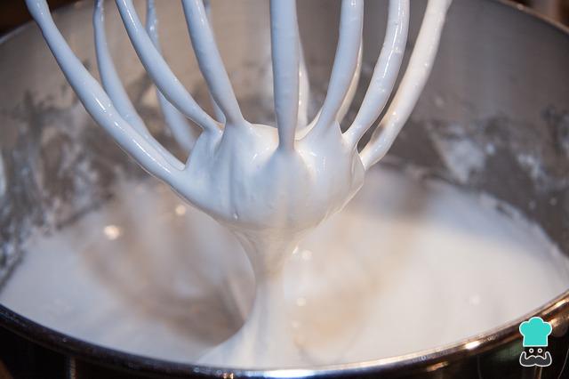 Aparte, en otro recipiente, bate la nata hasta que quede ligeramente montada. Reserva.