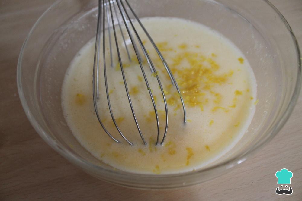 Lava y seca bien el limón y rállalo. Incorpora la ralladura a la mezcla de bizcocho sin harina light. Mezcla suavemente.
