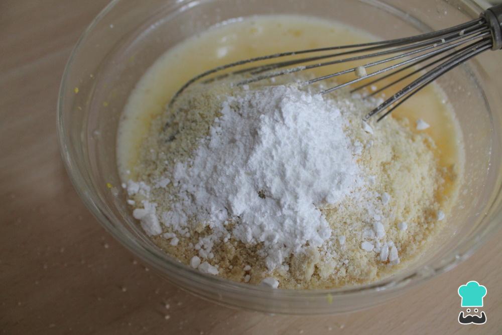 Por último, añade la almendra molida y el sobre de levadura química. Mezcla todo bien, deshaciendo los posibles grumos que deje la levadura.