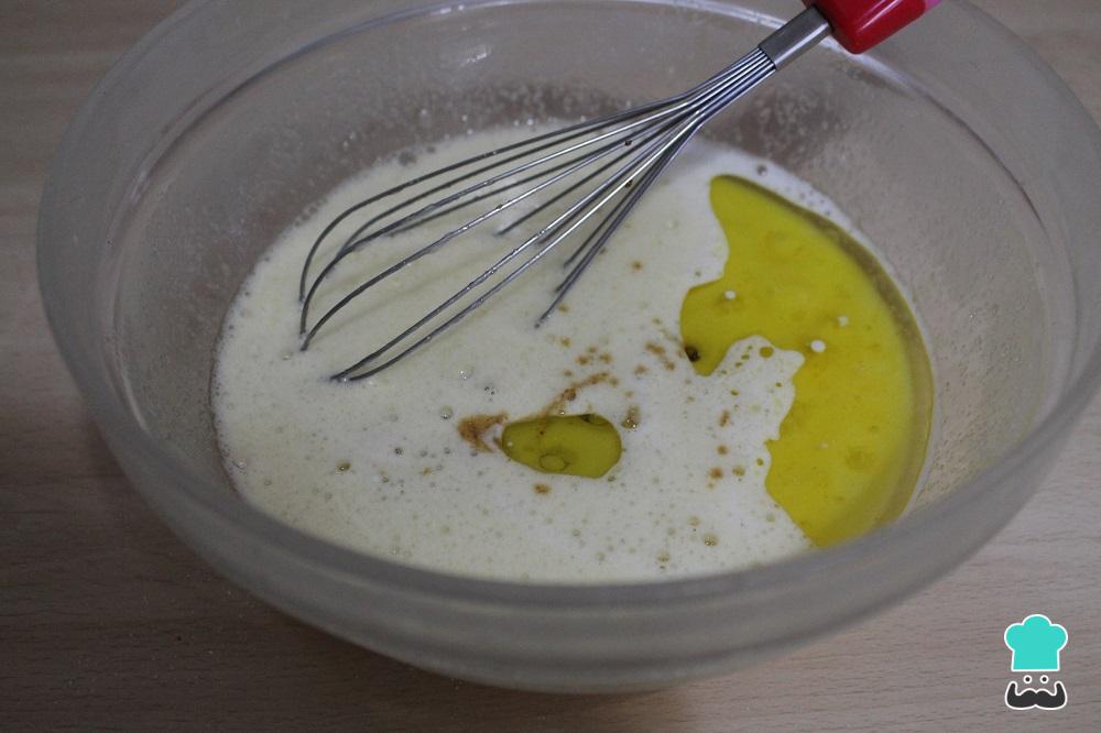 Incorpora la leche, el aceite y el extracto de vainilla. Bate bien hasta que la mezcla quede homogénea.