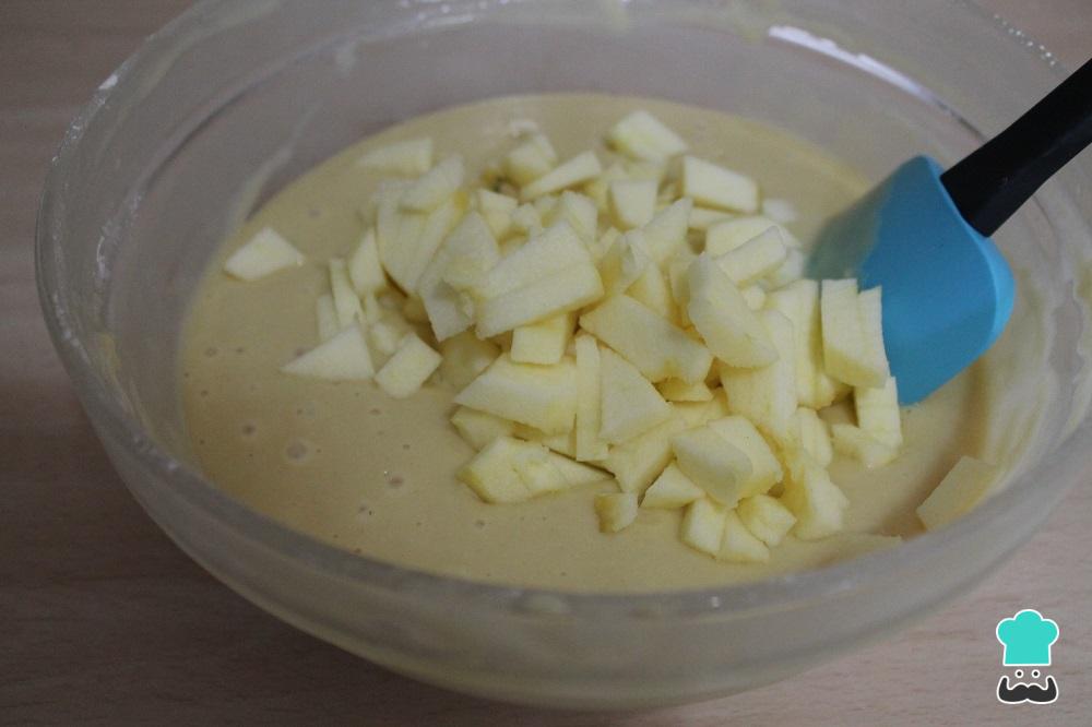 Añade los cubitos de manzana a la masa del bizcochuelo y mezcla con una espátula.