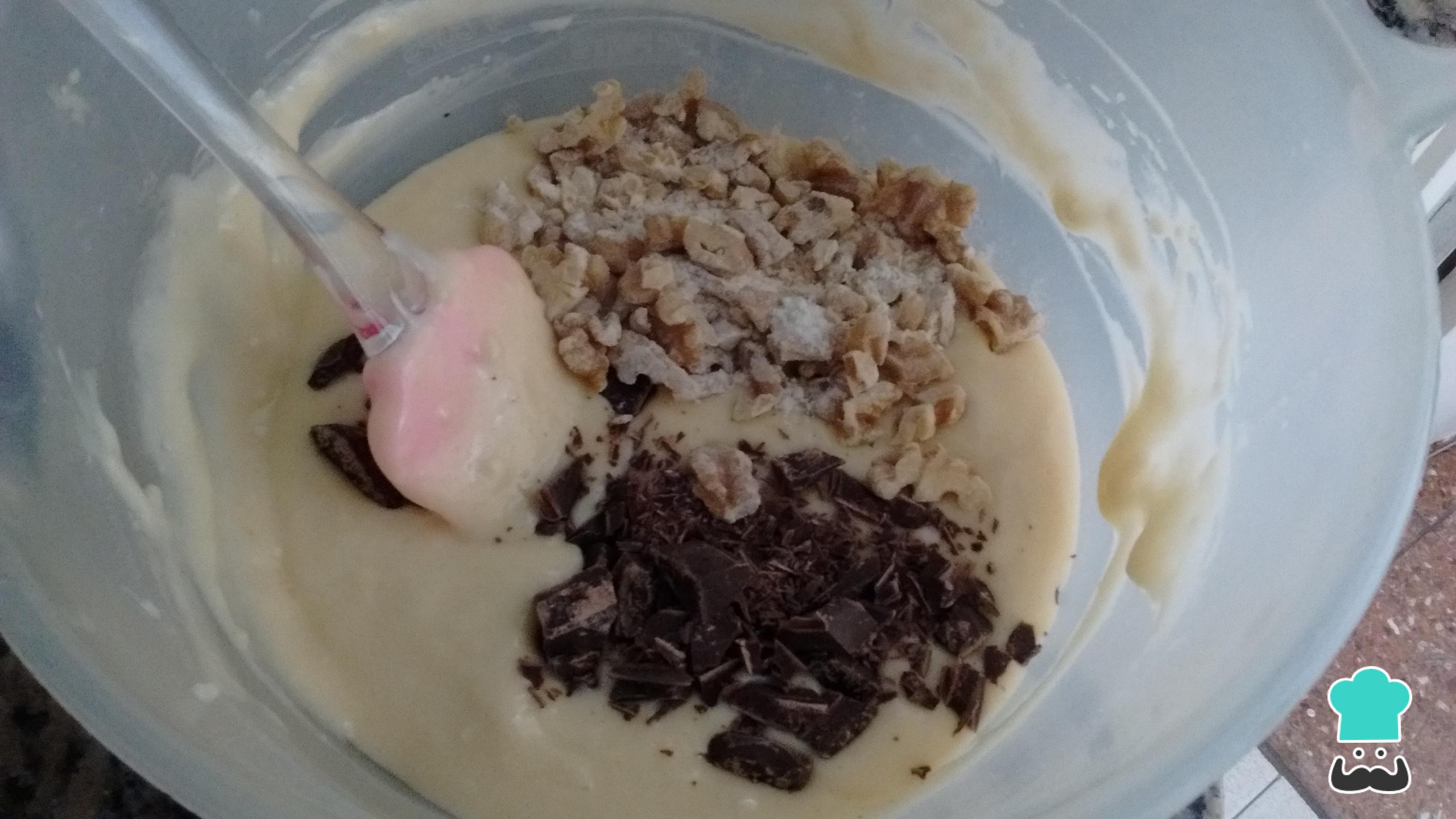 Por último, añade las nueces picadas y el chocolate e integra también con mucha suavidad.