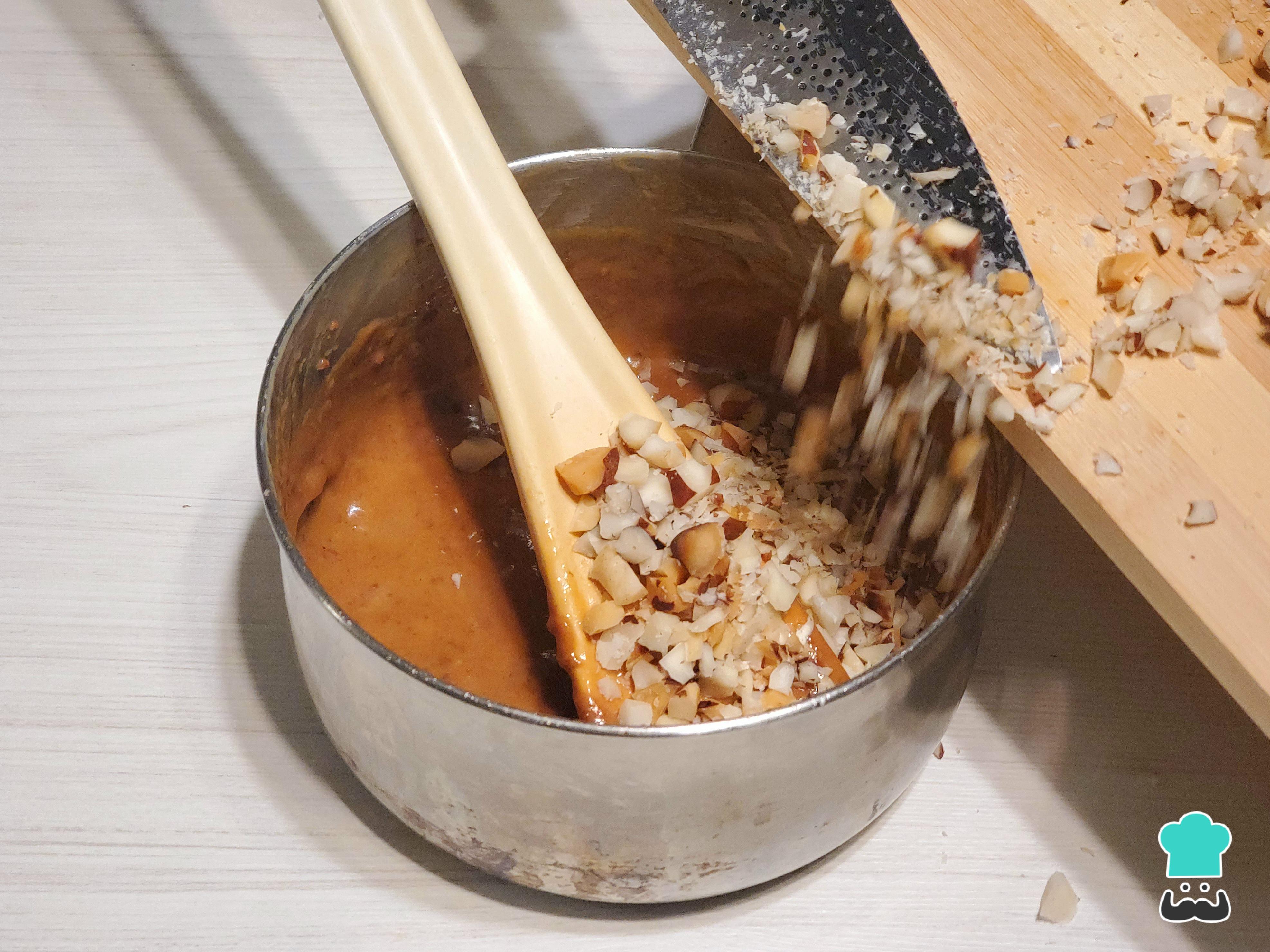 Agrega las pecanas picadas y tostadas, remueve bien y reserva.