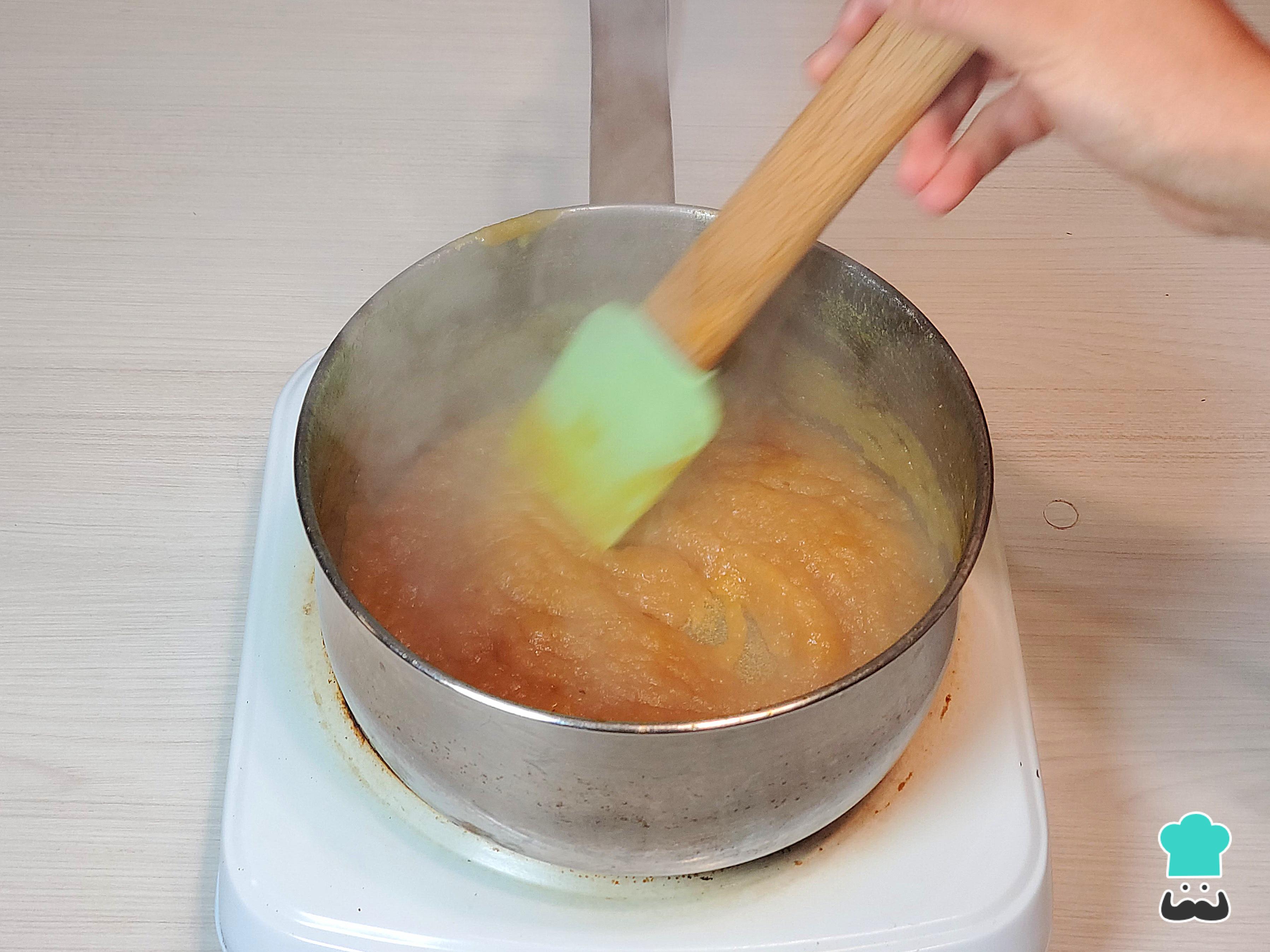 La cuarta preparación es la mermelada de albaricoque. Comienza colocando los albaricoques en agua caliente para hidratarlos. Déjalos reposar por 10 minutos o hasta que estén suaves y, luego, tritúralos en la licuadora. Vierte este puré en una olla y agrega el azúcar. Deja que hierva hasta que se vea denso como una mermelada o compota y luego retira del fuego y reserva.