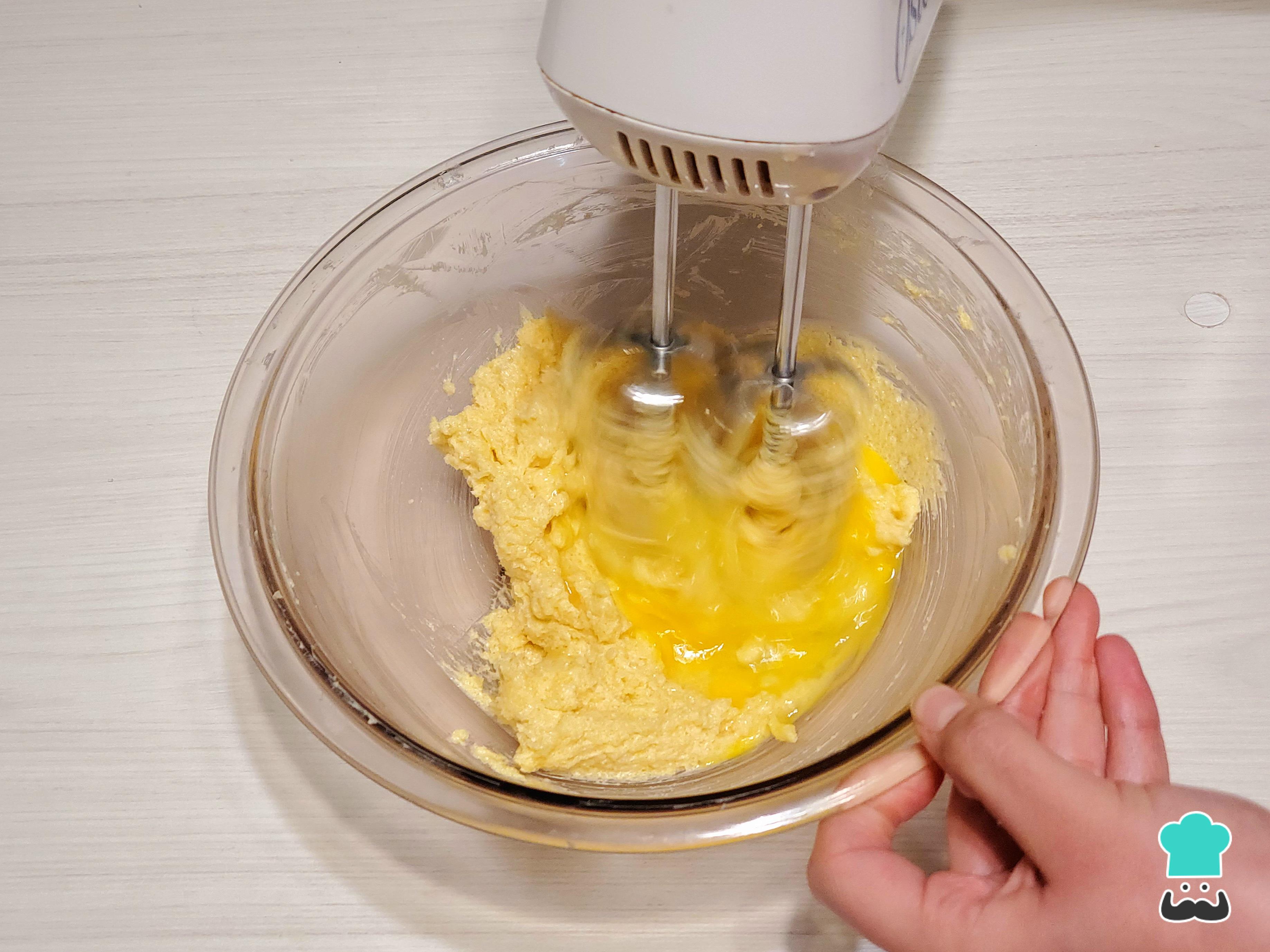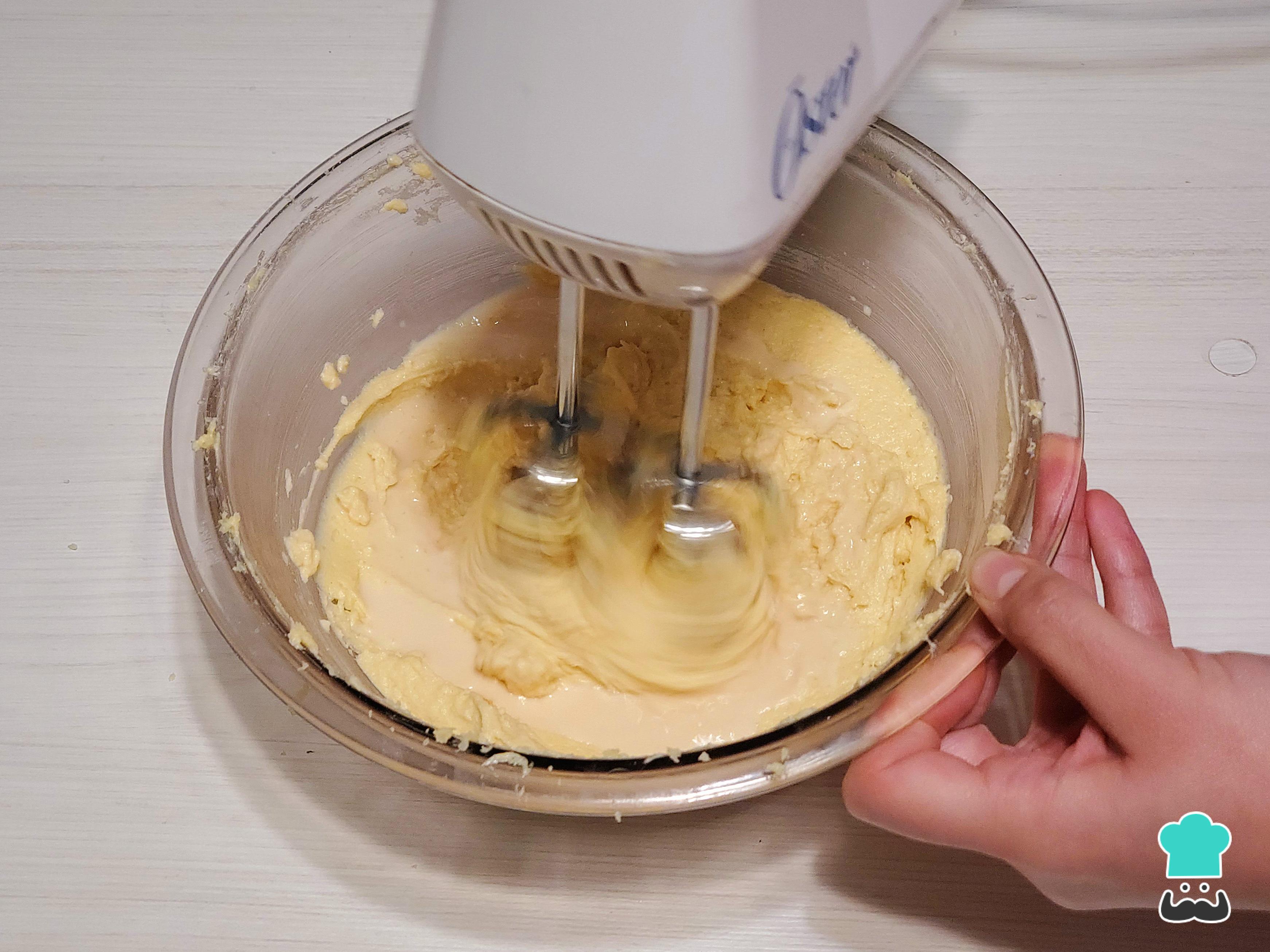 Incorpora los huevos uno a uno y bate después de cada adición. Además, en este momento puedes saborizar con esencia de vainilla.
