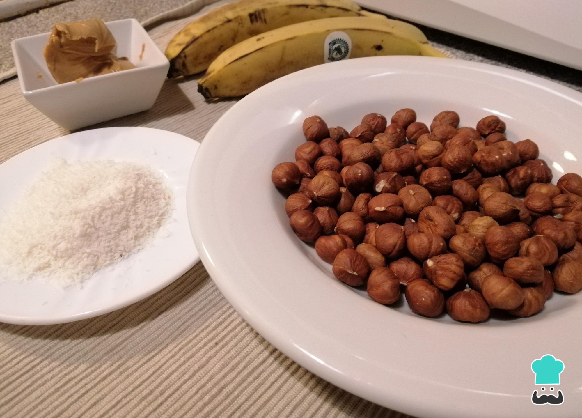 Empezaremos la receta de bolitas de coco seleccionando los ingredientes. En este sentido, es muy aconsejable que los plátanos estén maduros, de esta forma será más sencillo trabajar con ellos y nos ofrecerán un extra de azúcares naturales. Por otro lado, podemos sustituir las avellanas por otros frutos secos, como almendras o nueces.
