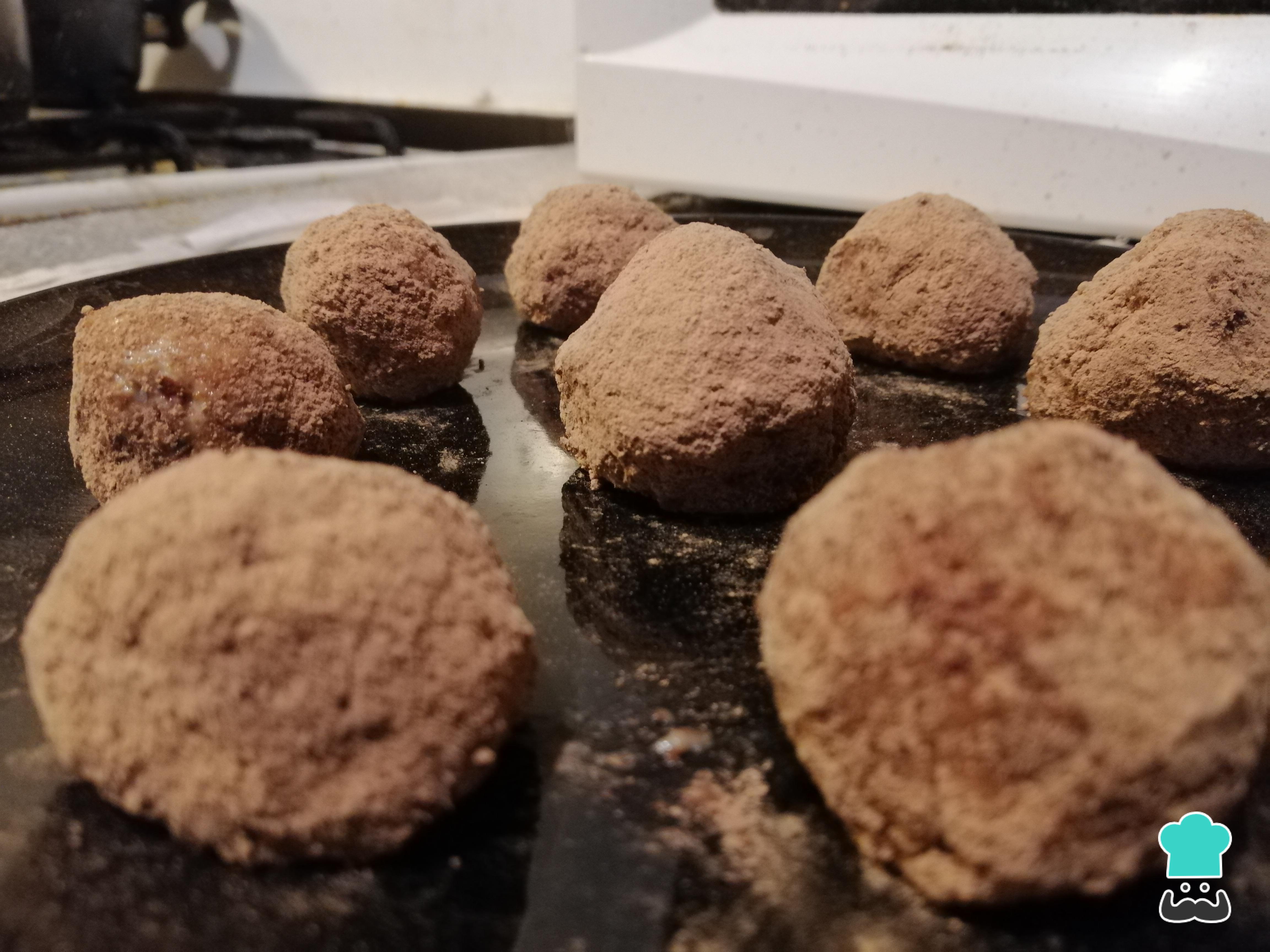 En este caso hemos decidido terminar una segunda ronda de bolitas energéticas veganas con cacao en polvo, dando como resultado unas deliciosas bolitas de coco con chocolate.