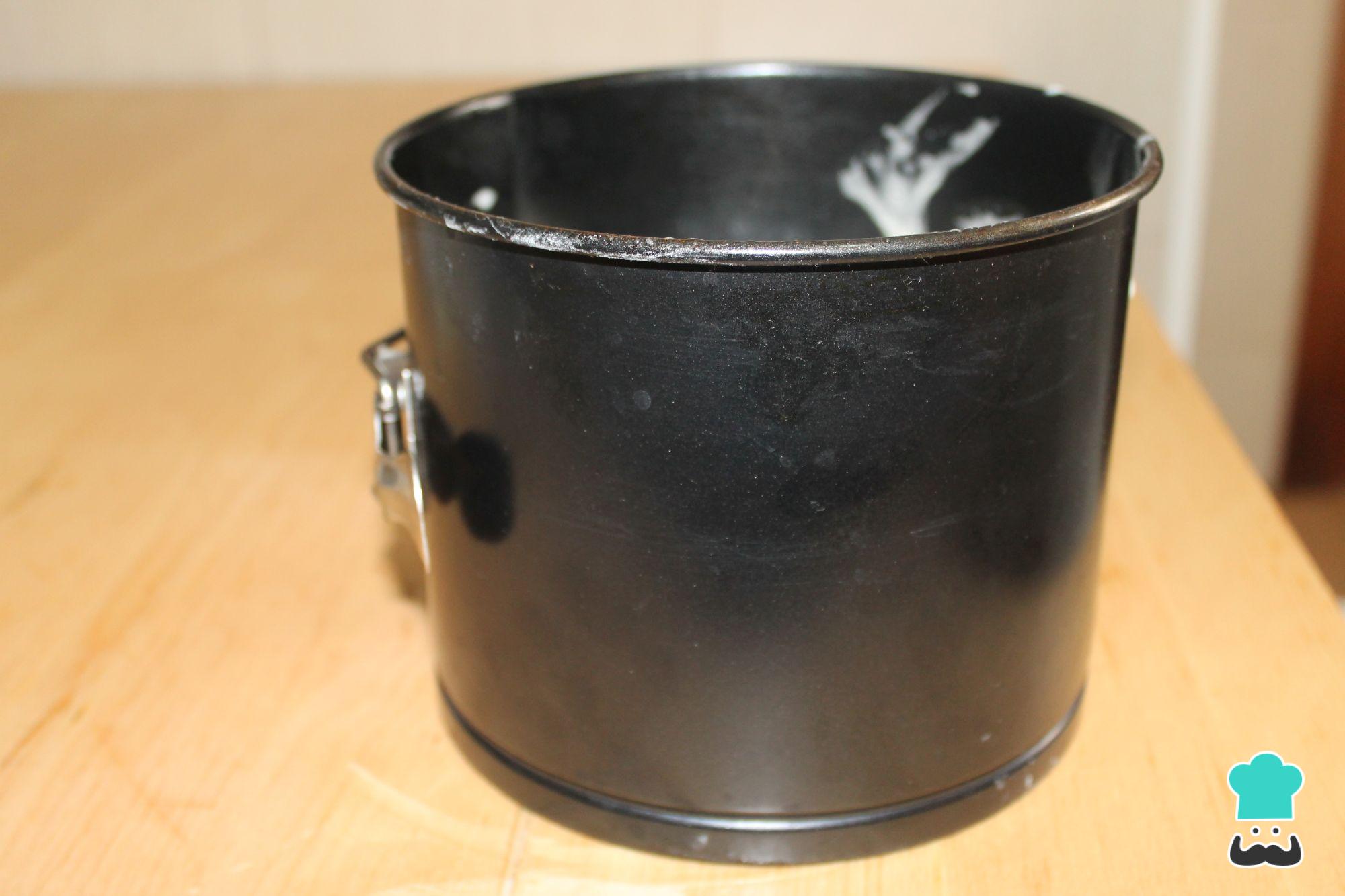 Precalienta el horno a 180º C y engrasa un molde redondo de unos 17 cm de diámetro. Debes engrasarlo bastante bien, ya que suele pegarse, por lo que lo más recomendable se embadurne con mantequilla fundida, aceite o spray antiadherente, también debes espolvorear con maicena retirando el exceso. Vierte después la masa y hornea con calor arriba y abajo a 180 ºC durante 14 minutos o hasta que al pincharlo con un palillo salga sin resto de masa.