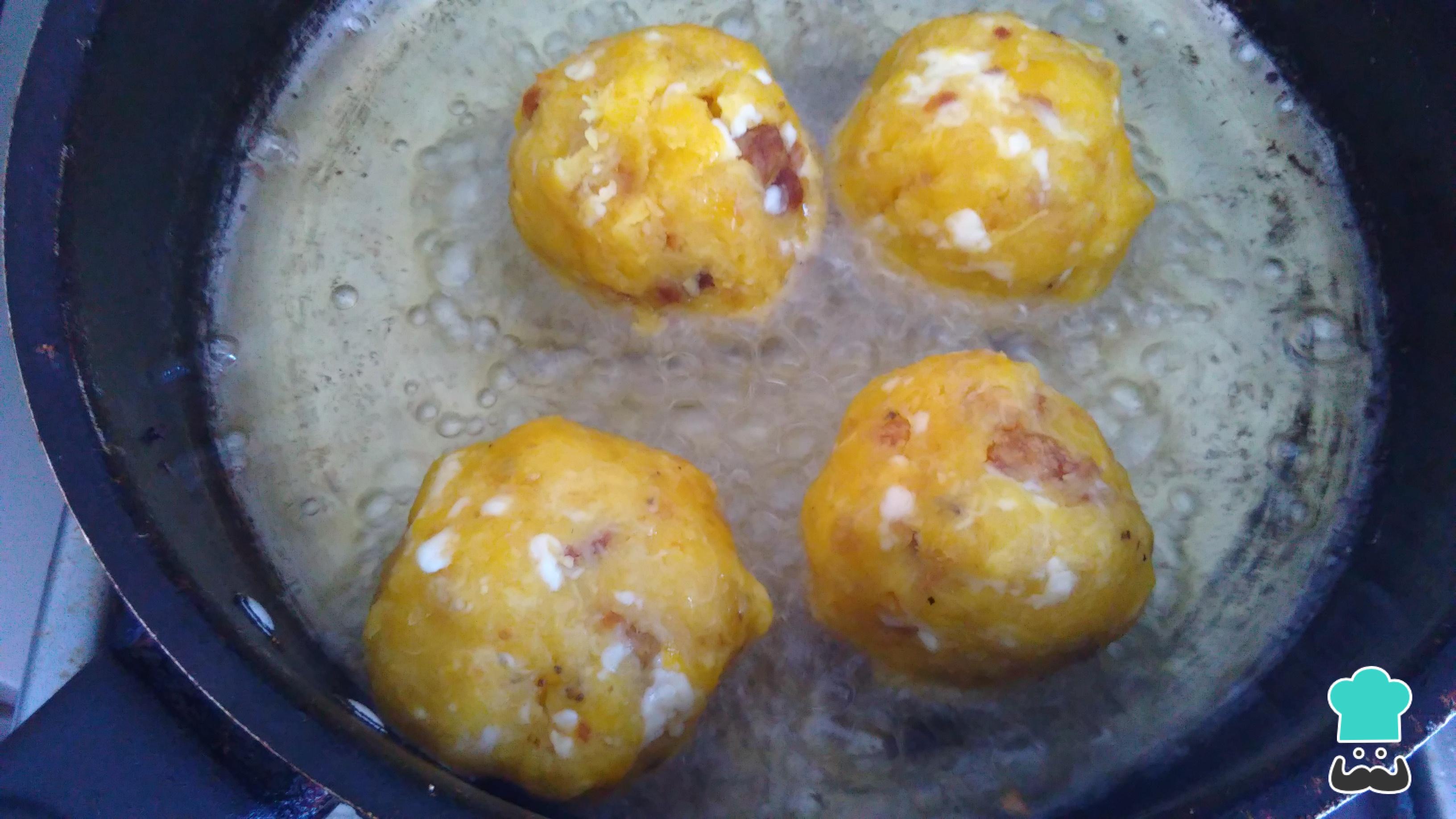 Fríe los bolones de plátano en abundante aceite caliente. Procura que doren por todos lados.