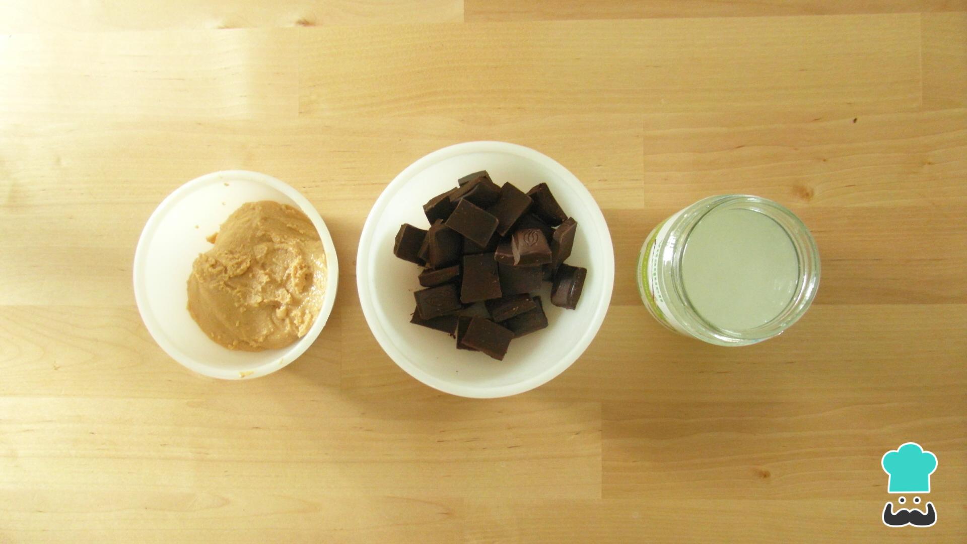 Reúne los ingredientes primeramente. Puedes hacer tú mismo la receta de crema de cacahuete casera sin azúcar en vez de comprarla si quieres.