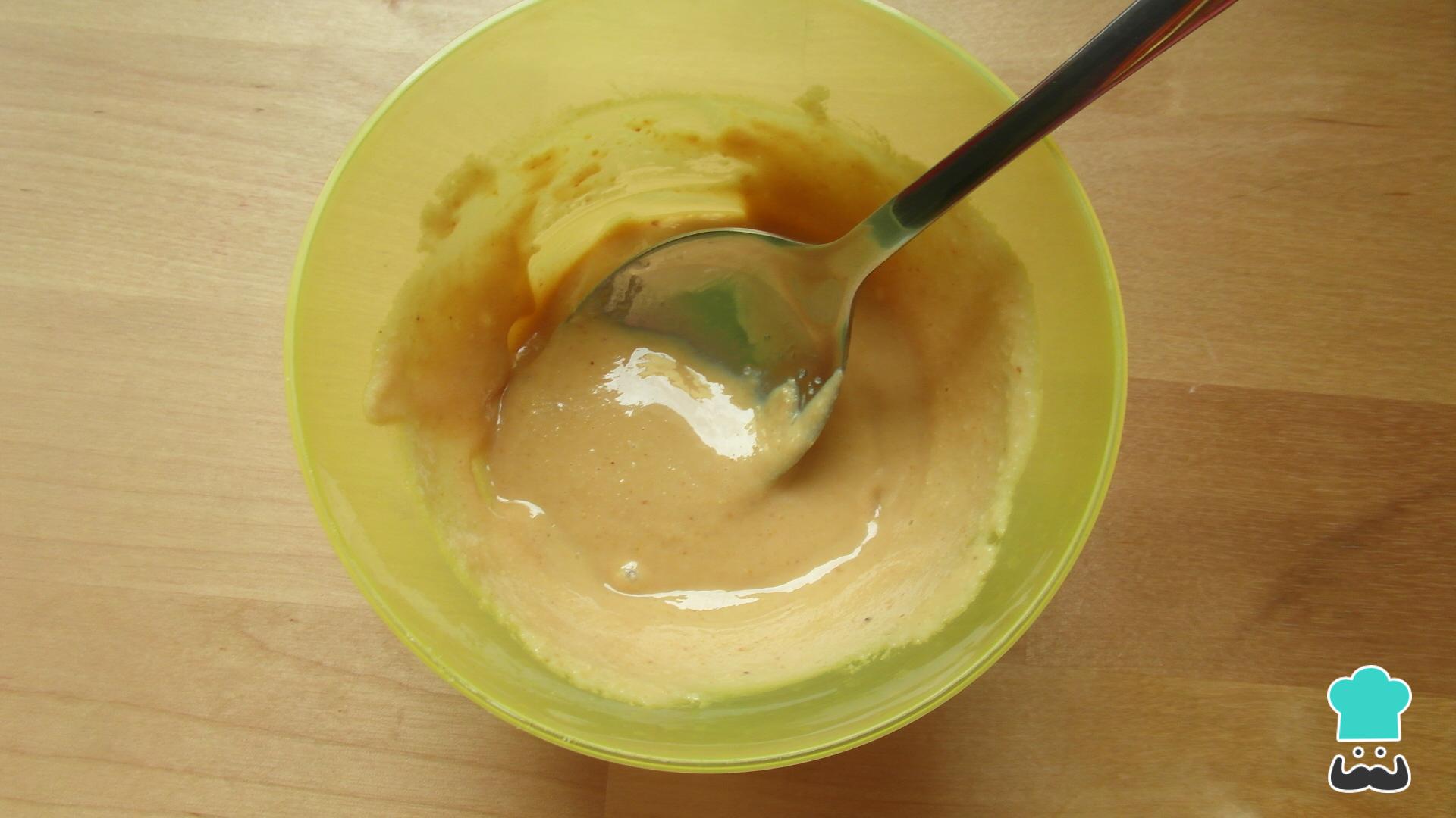 Prepara el relleno mezclando la mantequilla de maní sin azúcar con el aceite de coco y una pizca de sal.