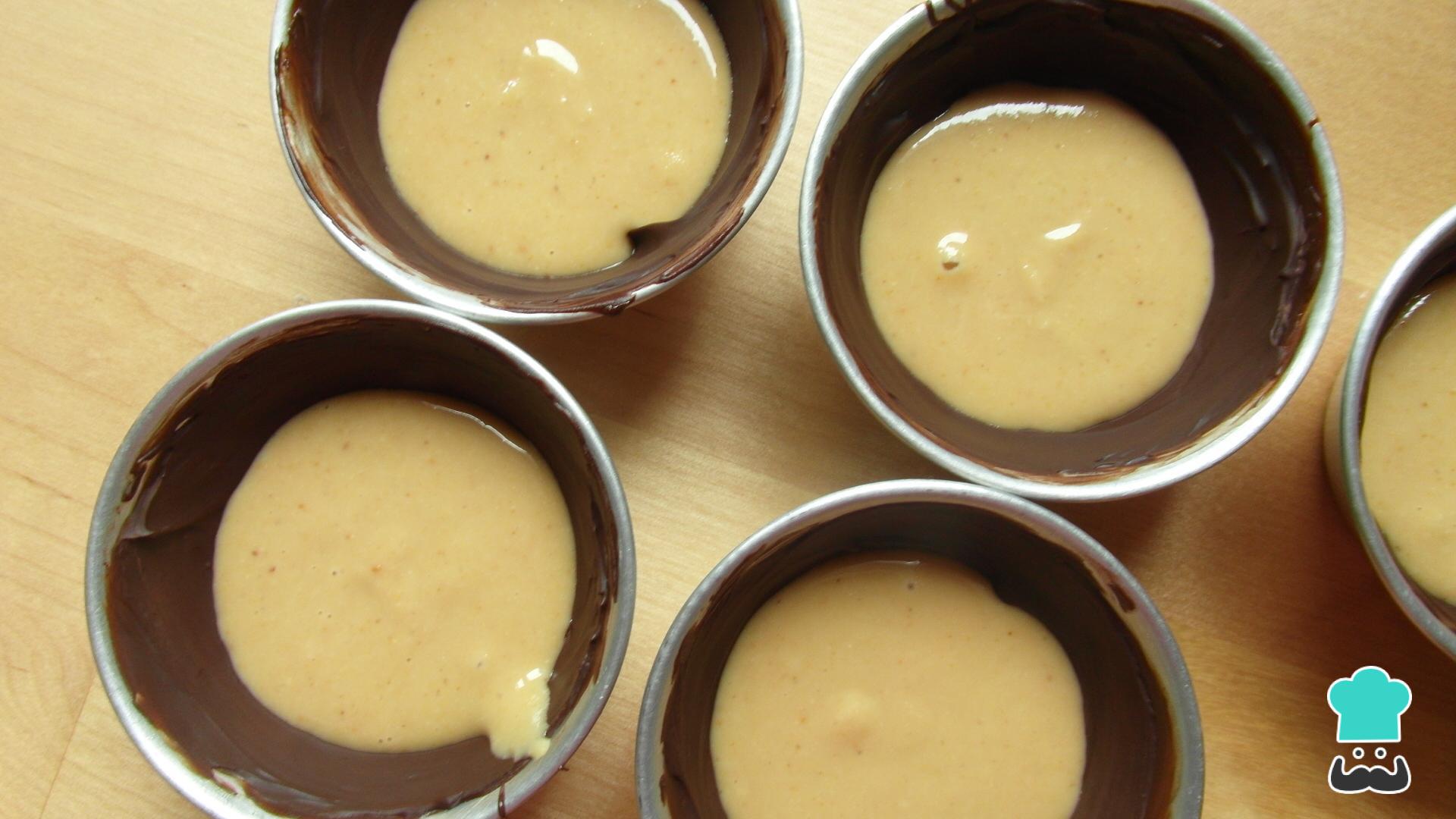 Mete los moldes en la nevera durante 10 minutos para que se solidifique el chocolate. Después sácalos, agrega otra capa de chocolate en el fondo y los bordes, y guárdalos de nuevo en la nevera otros 10 minutos. Al repetir el proceso, estarás creando una corteza más gruesa para los bombones con crema de cacahuete.