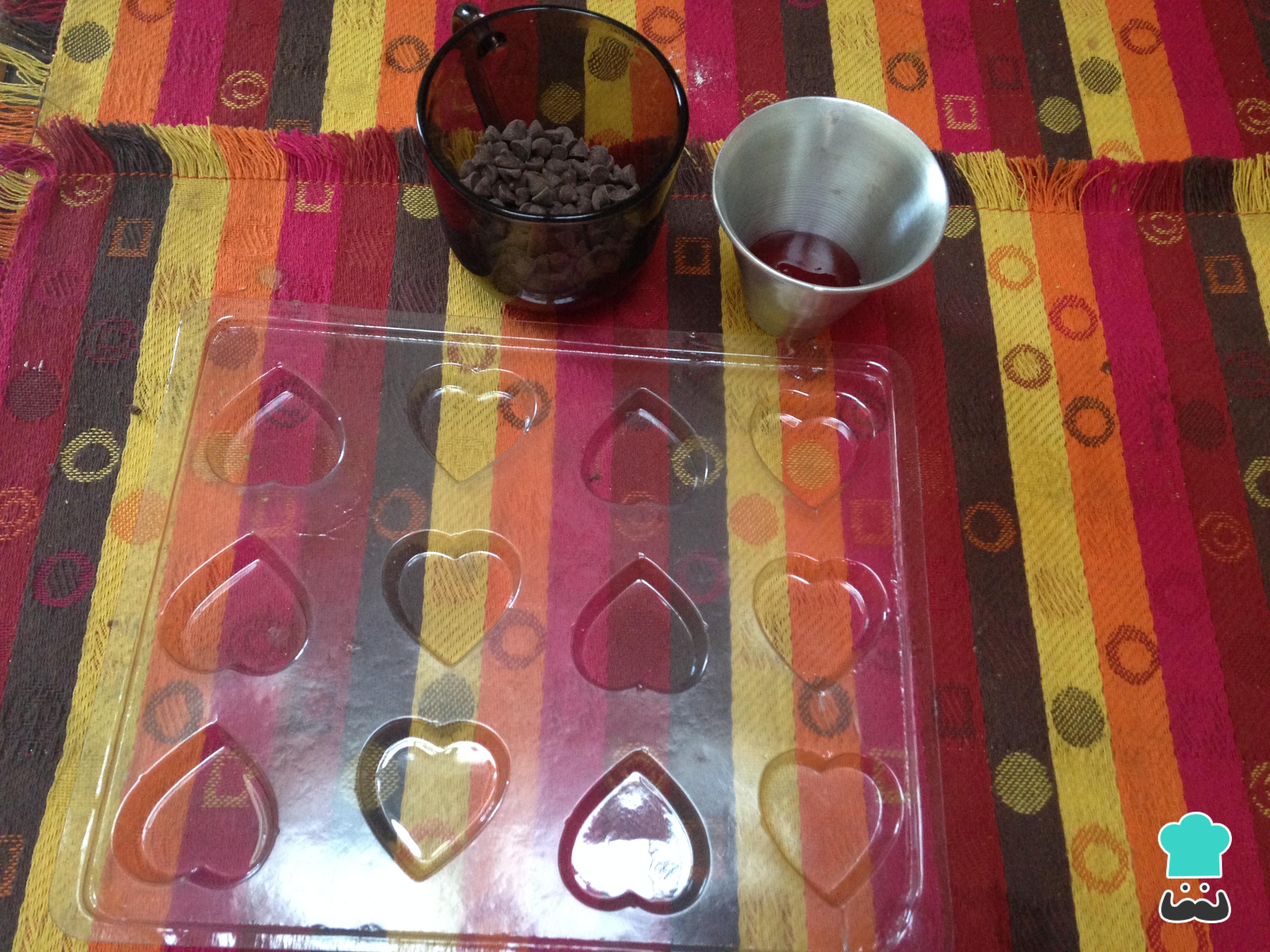 Alistar todos los ingredientes. Ten en cuenta que para realizar los bombones será necesario un molde especial con formas de corazón.