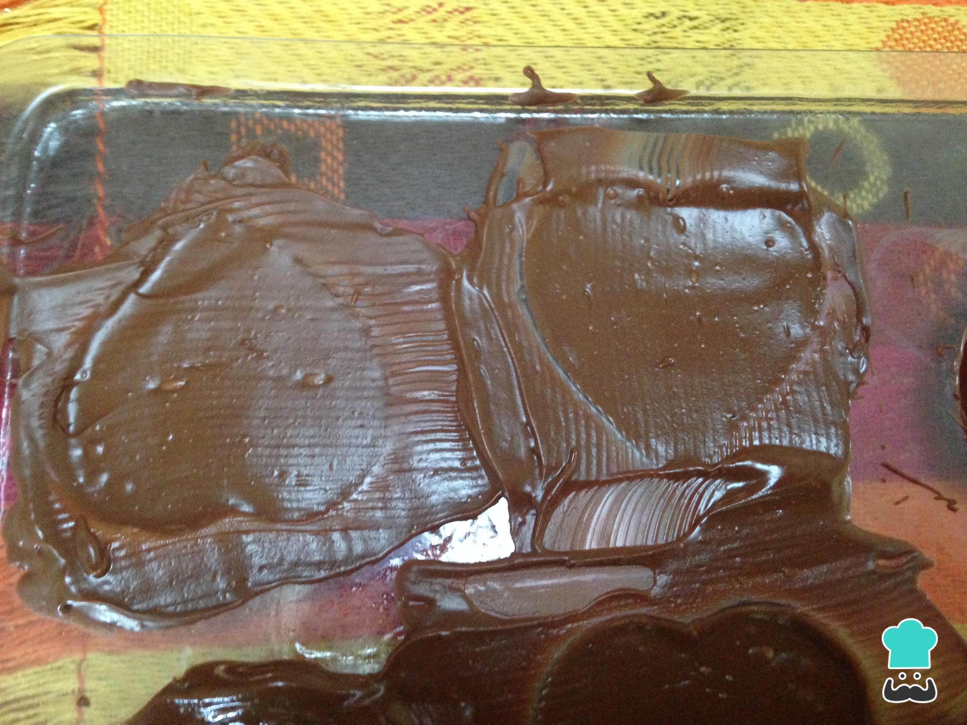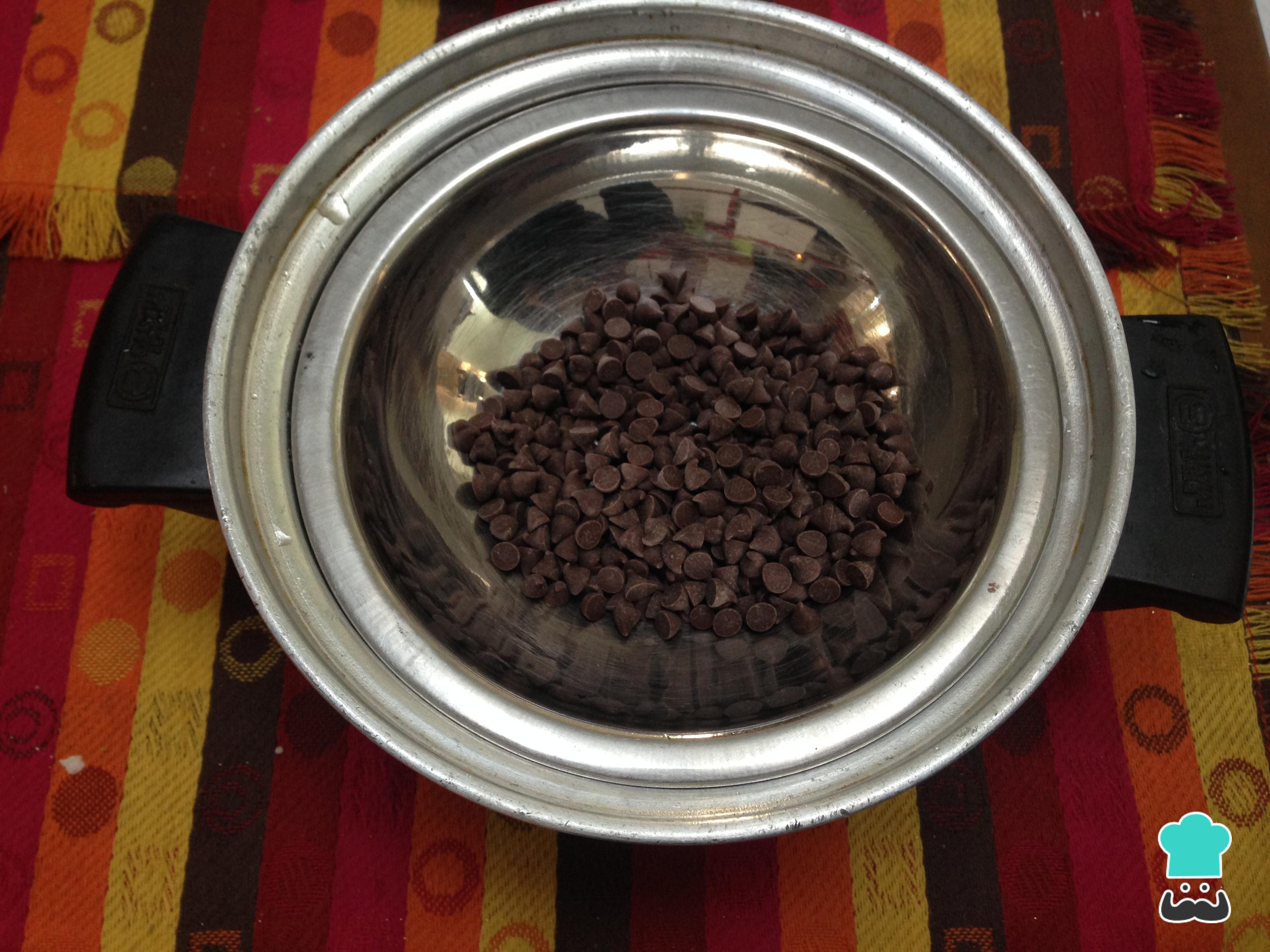 Derretir el chocolate a baño maría, hasta que quede totalmente liquido.