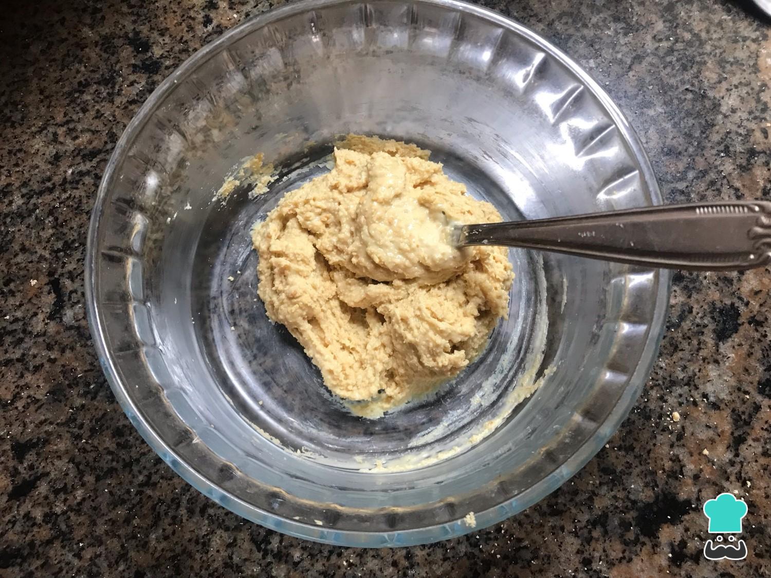 Mezcla el chocolate blanco derretido con la mantequilla de maní.