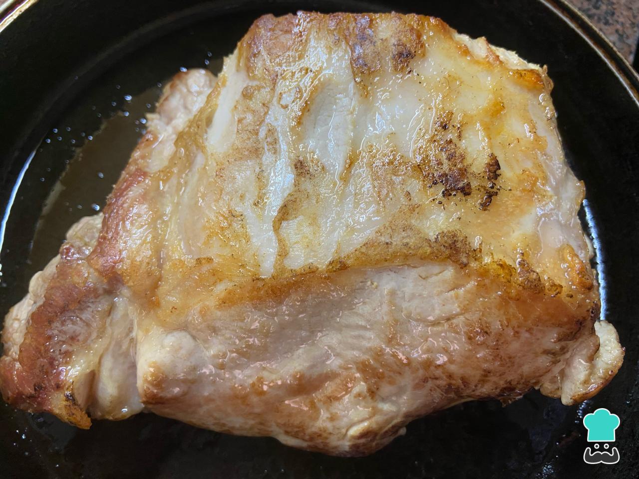 Coloca 1 cucharada de aceite en una sartén y lleva al fuego. Cuando se caliente, sella la bondiola dejando que se dore por todos sus lados.