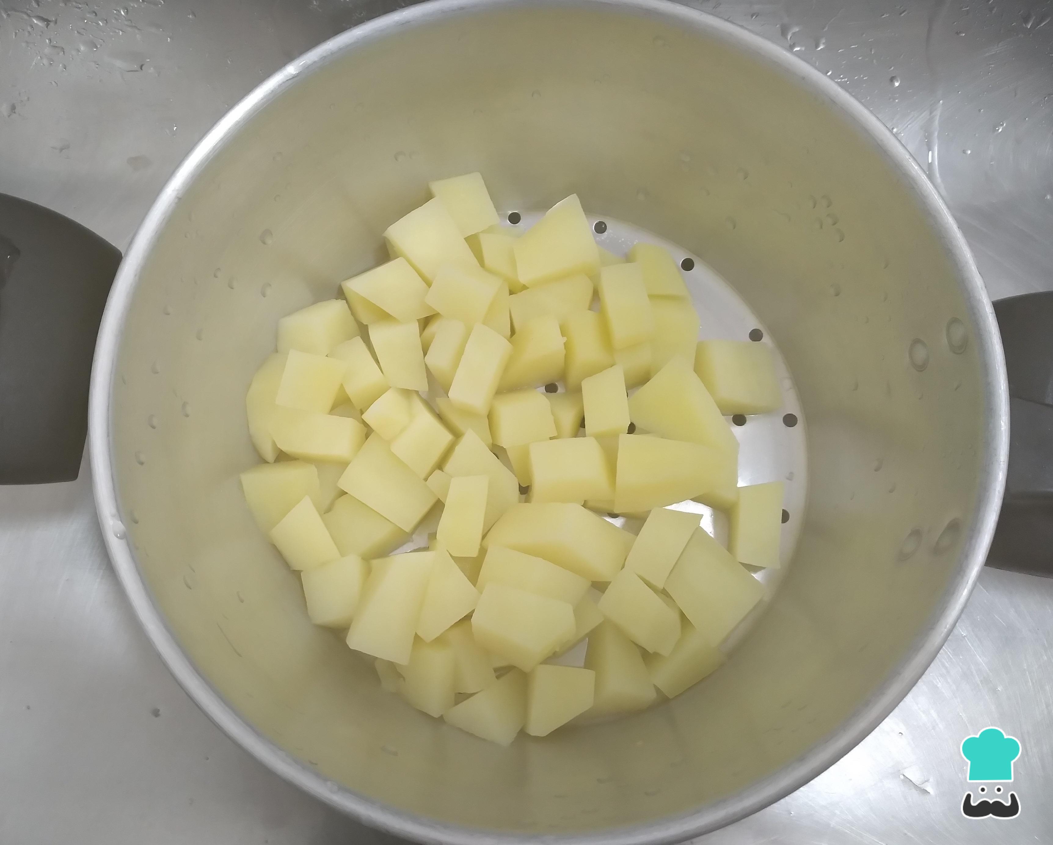 Cuando estén cocidas, escurre en un colador hasta que las patatas estén bien secas.