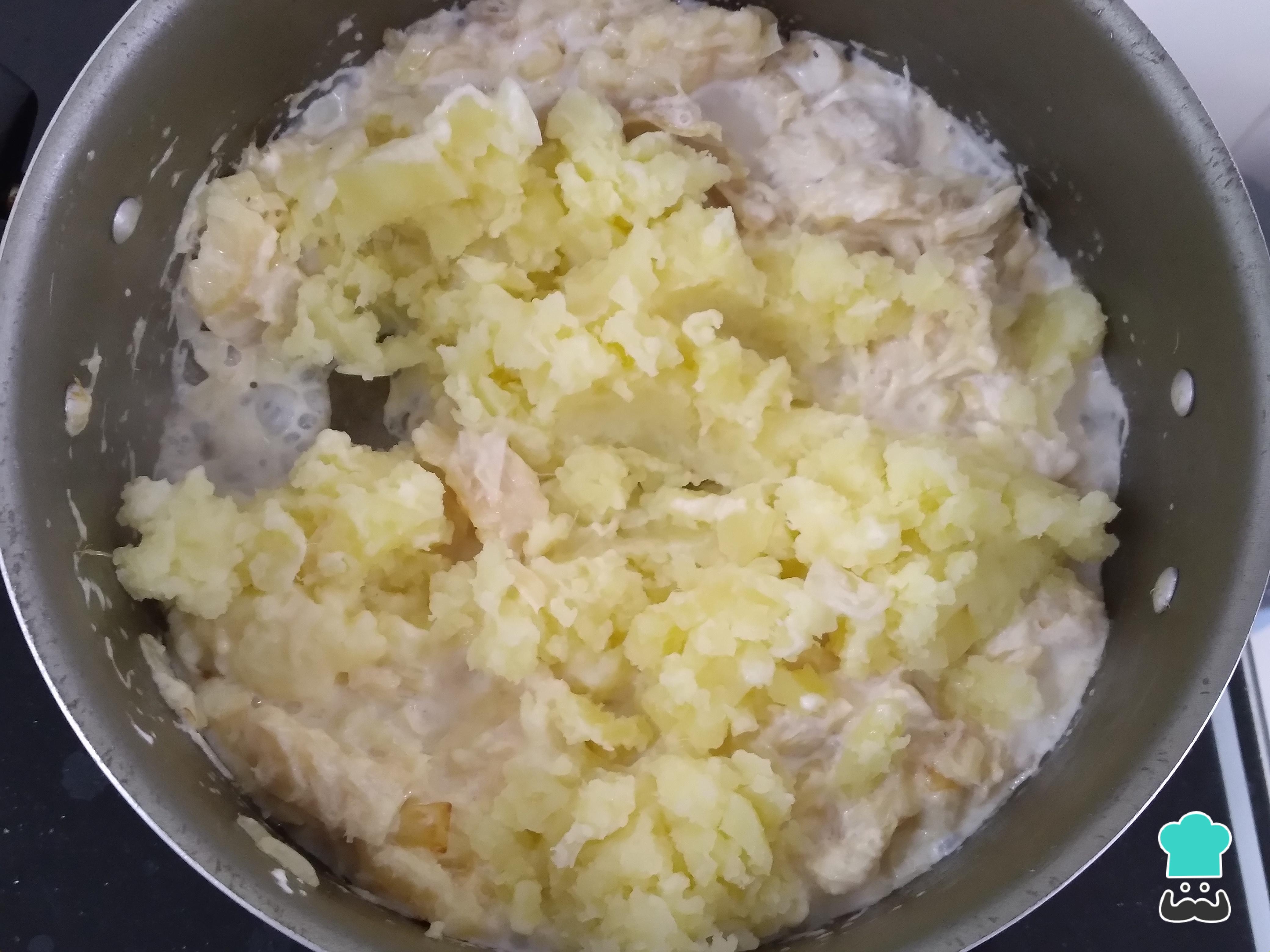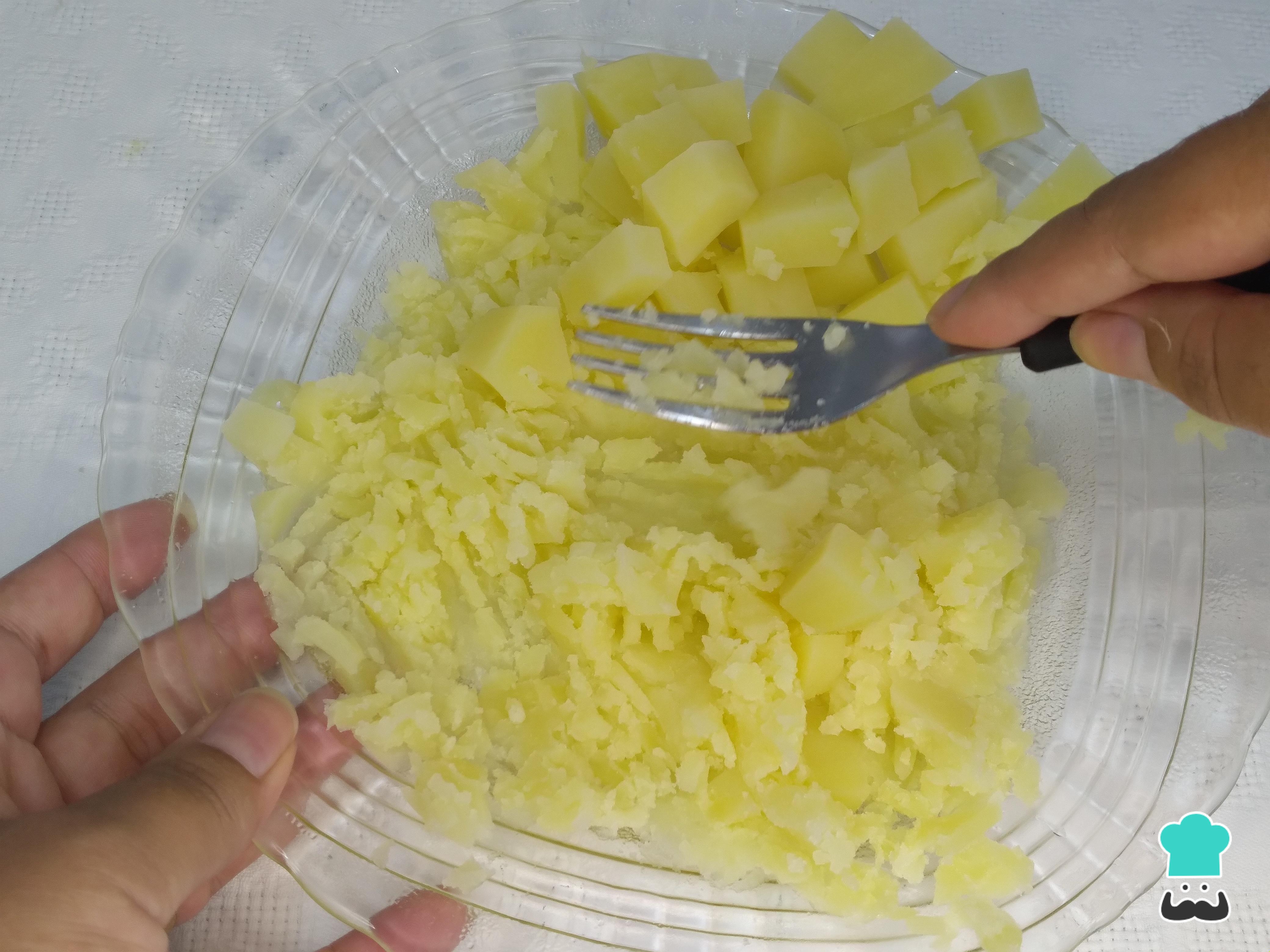 Después de escurrir las patatas, con un tenedor tritura y déjalas bien homogéneas.